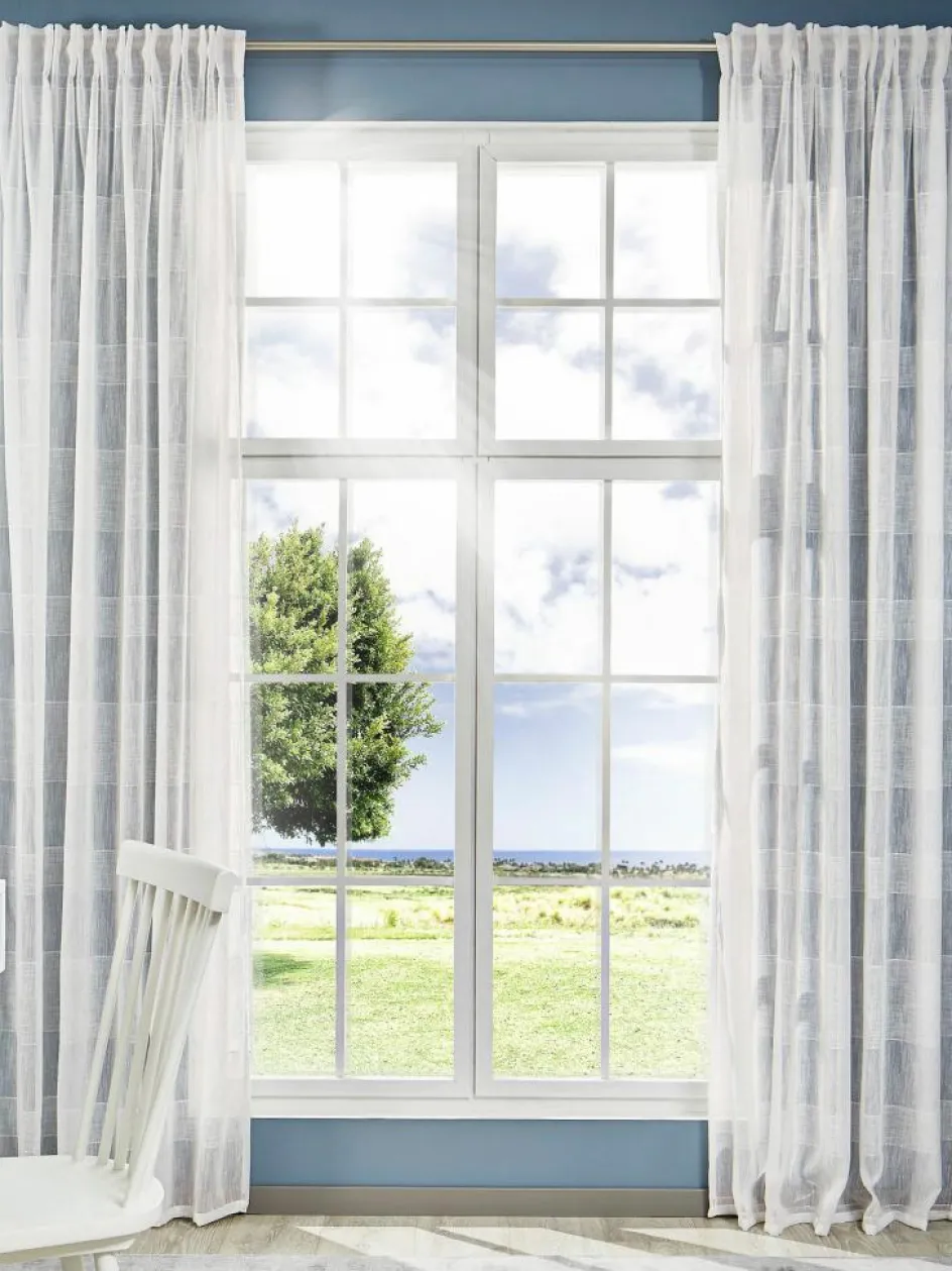 Halbtransparenter Vorhang mit verdeckten Schlaufen. Geeignet für Schiene und Stange. Paket enthält je einen Vorhang.