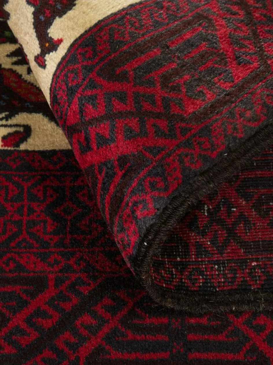 -Teppich hat seinen Namen vom Stamme der Baluchen, wird aber auch von anderen Stämmen geknüpft. Die einzelnen Stämme bleiben dabei ihren traditionellen Mustern und ihrer individuellen Farbgebung treu. Daher ist einBelutsch