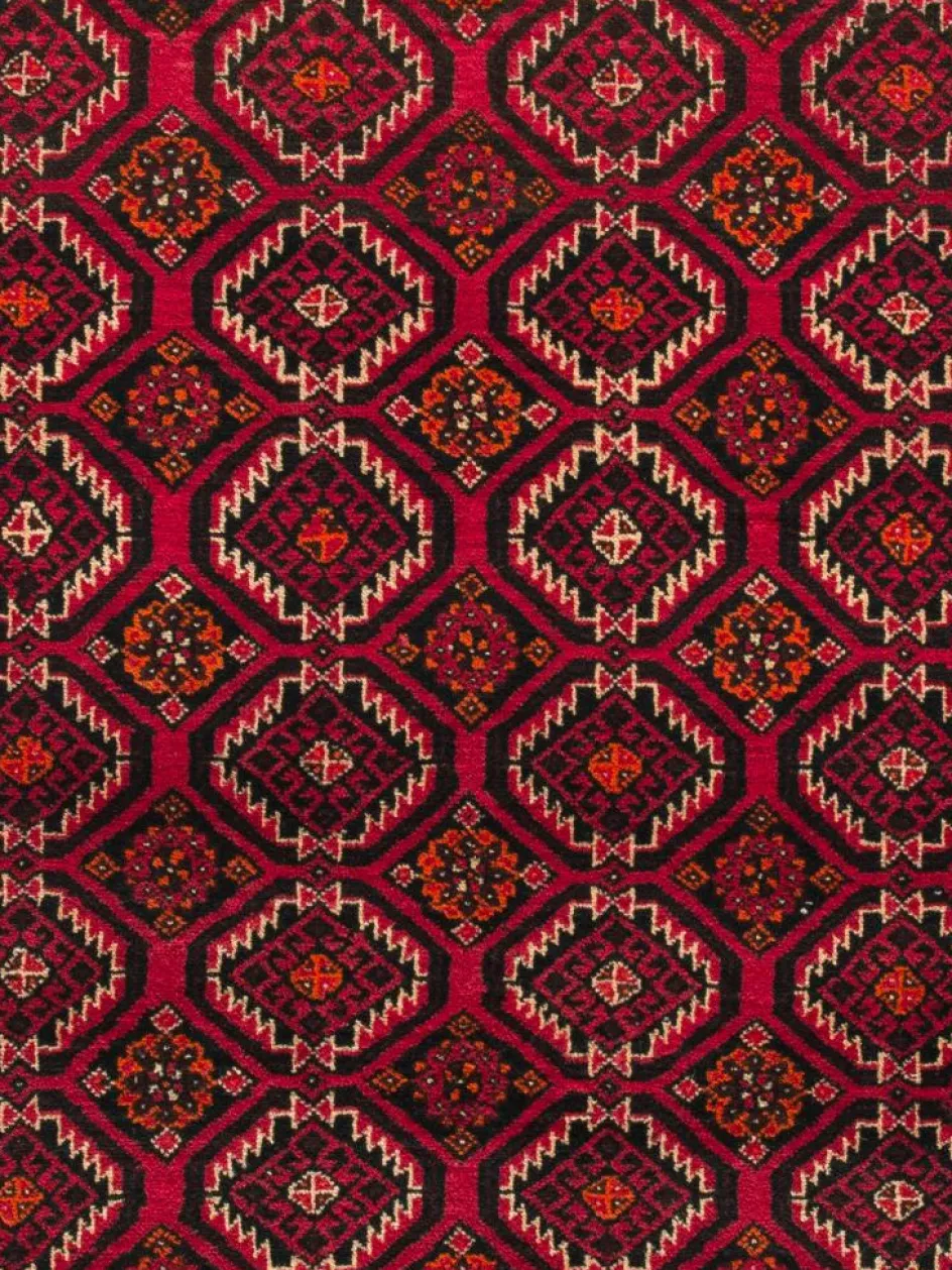 -Teppich hat seinen Namen vom Stamme der Baluchen, wird aber auch von anderen Stämmen geknüpft. Die einzelnen Stämme bleiben dabei ihren traditionellen Mustern und ihrer individuellen Farbgebung treu. Daher ist einBelutsch