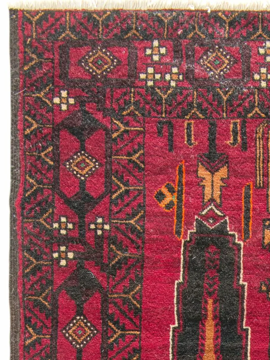 -Teppich hat seinen Namen vom Stamme der Baluchen, wird aber auch von anderen Stämmen geknüpft. Die einzelnen Stämme bleiben dabei ihren traditionellen Mustern und ihrer individuellen Farbgebung treu. Daher ist einBelutsch