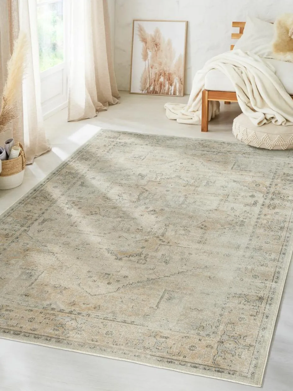 erhält er seinen seidigen Glanz und sein exklusives Flair.Extra flach gewebt. Oeko-Tex Standard 100. Für Fußbodenheizung geeignet.| Art: | Vintage-Teppich |