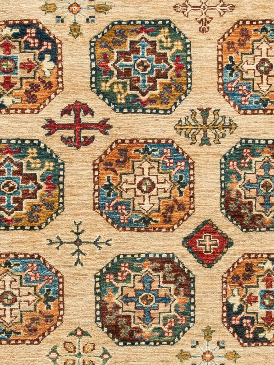 zeigt im Muster das klassische turkmenische Bucharadesign. Als Vorbild dienen dabei die jeweilige Stammeszeichen (Gül