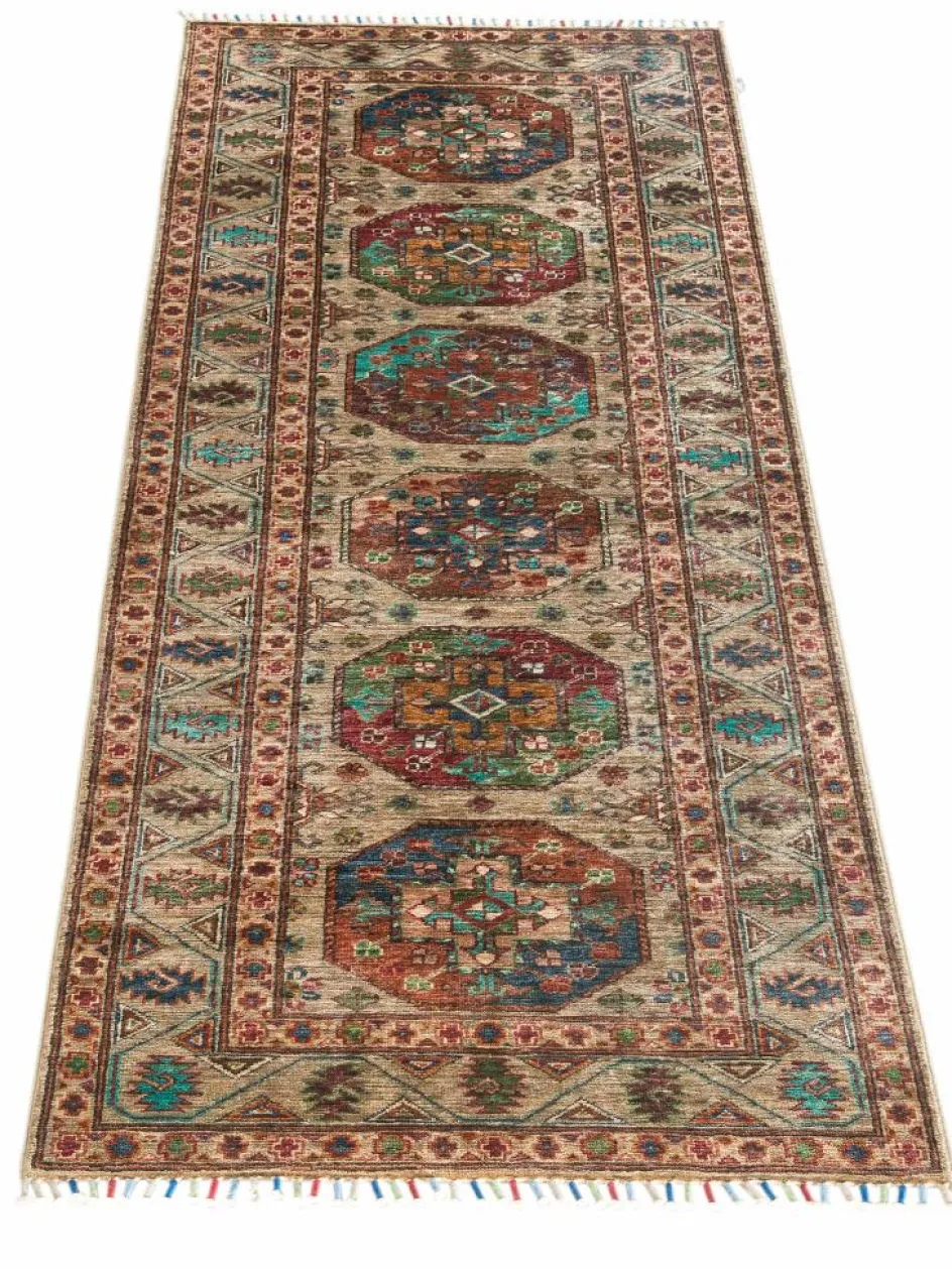 zeigt im Muster das klassische turkmenische Bucharadesign. Als Vorbild dienen dabei die jeweilige Stammeszeichen (Gül