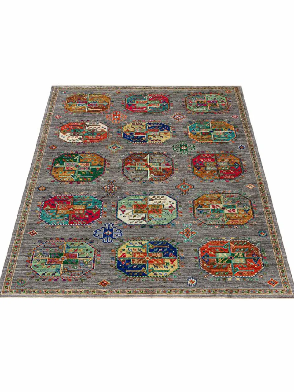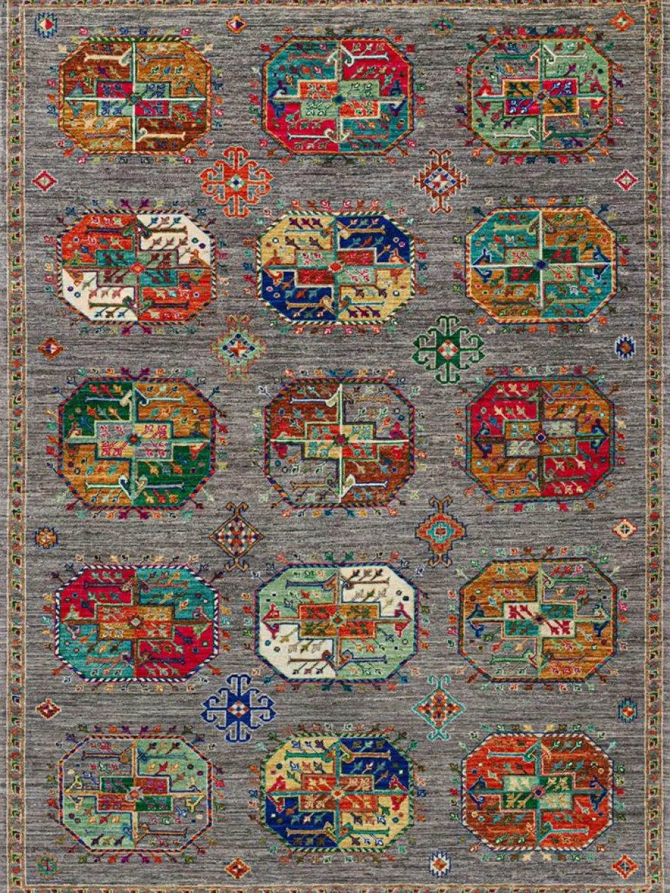 zeigt im Muster das klassische turkmenische Bucharadesign. Als Vorbild dienen dabei die jeweilige Stammeszeichen (Gül