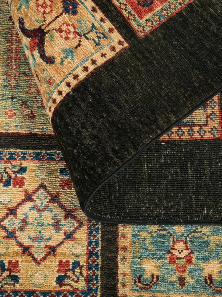 erinnert an einen üppig bewachsenen Garten mit geometrisch gegliederten, einzeln eingefassten Beeten zwischen denen die Bewässerungsgräben verlaufen. Durch den flachen und festen Flor ist der Teppich unempfindlich gegenüber den Belastungen des Alltags.| Gesamthöhe: | ca. 5 mm |