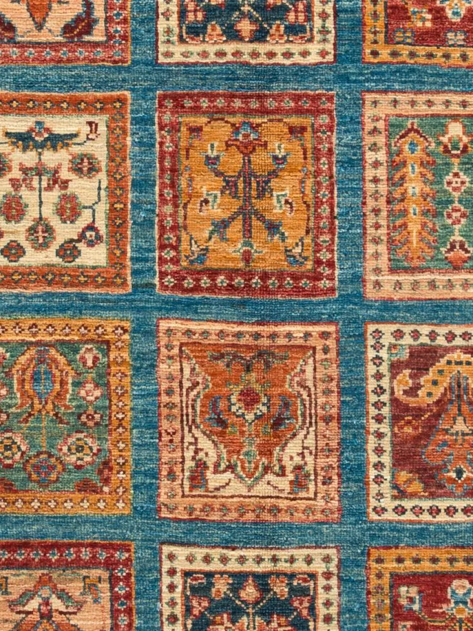 zeigt eine wunderschöne, farbenfrohe Interpretation des traditionellen, persischen Feldermusters. Das persischeFeldermuster