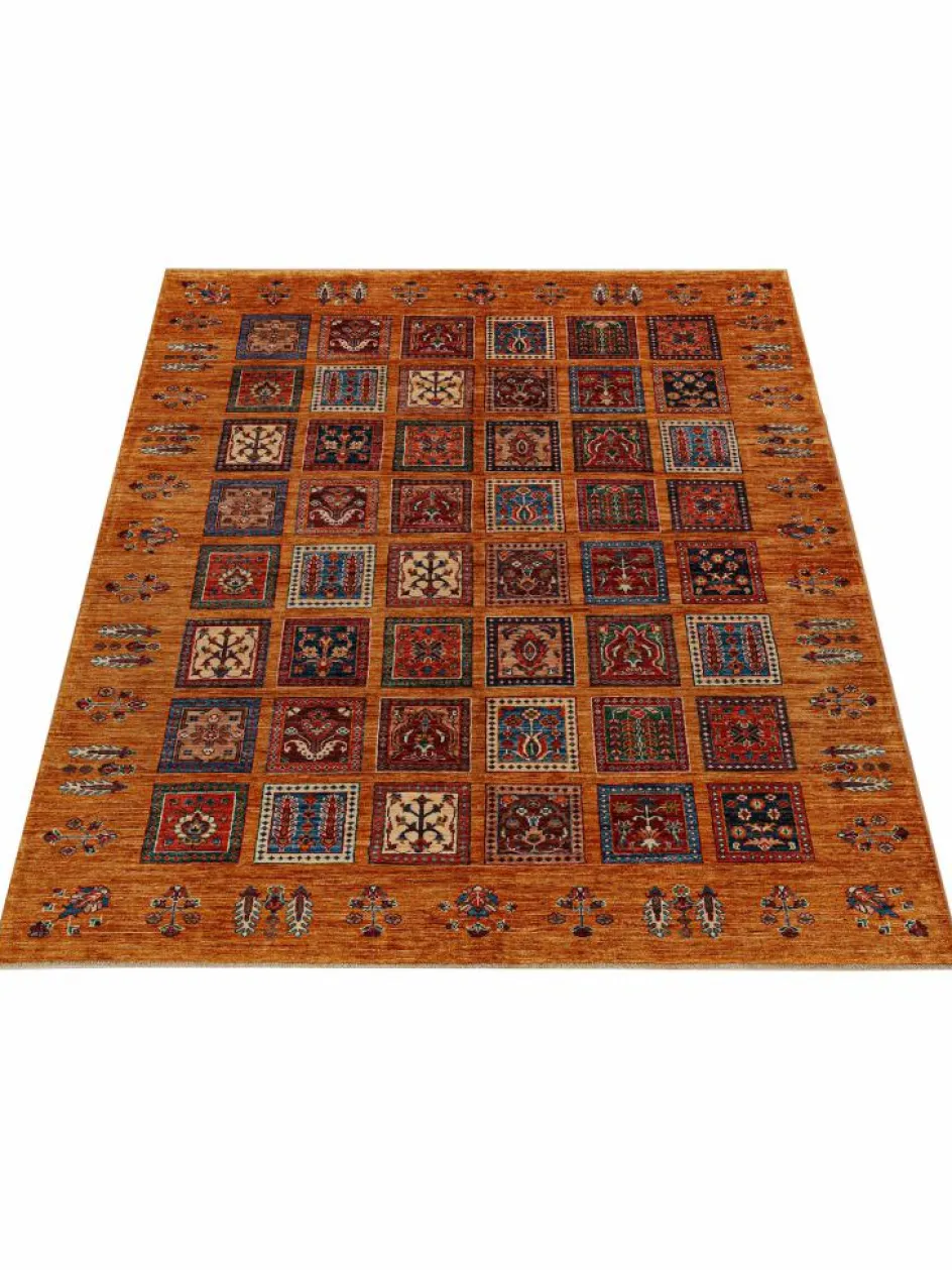 zeigt eine wunderschöne, farbenfrohe Interpretation des traditionellen, persischen Feldermusters. Das persischeFeldermuster