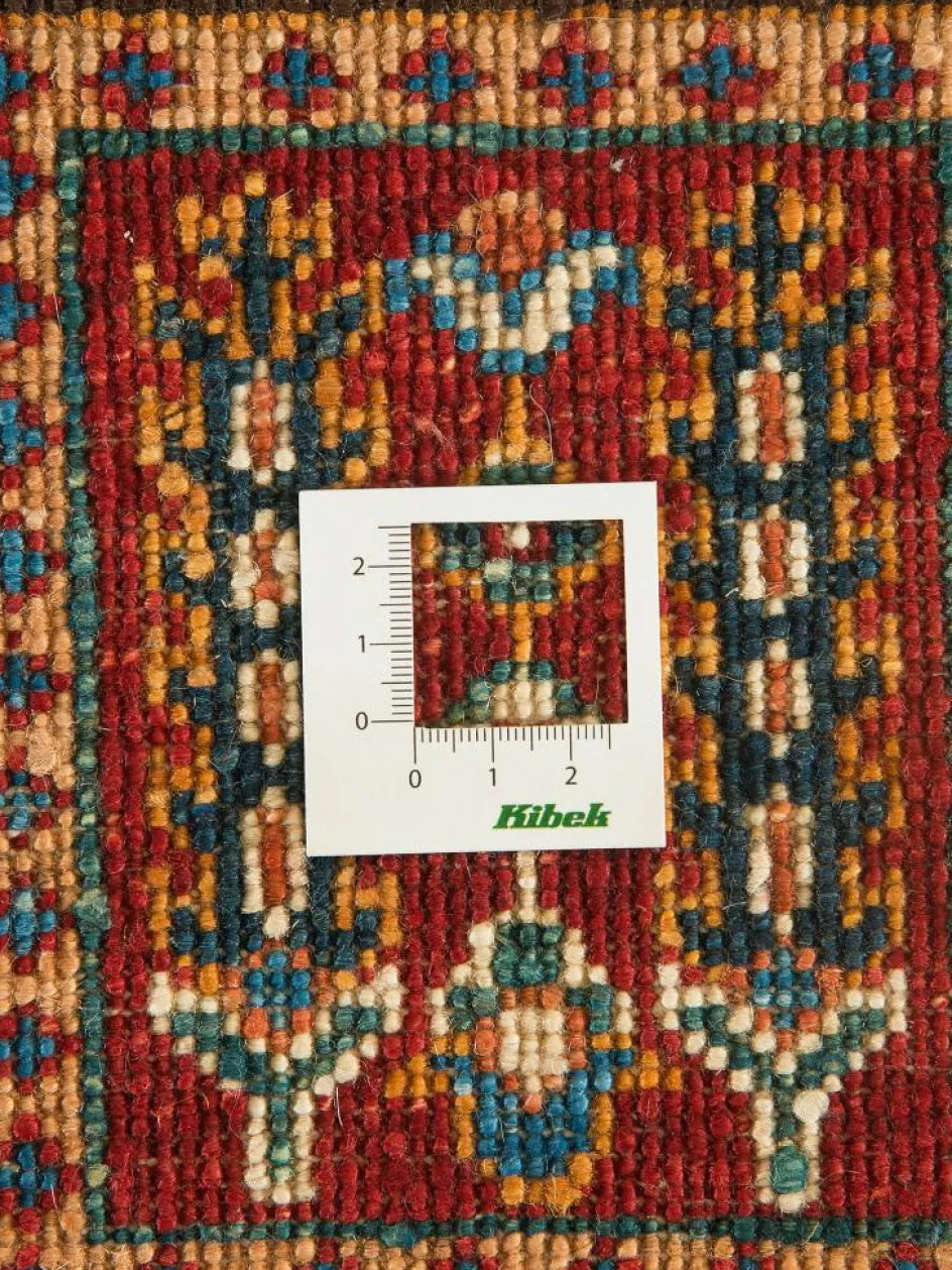 mit bunten Fäden zusammen gebunden. Durch den flachen und festen Flor ist der Teppich unempfindlich gegenüber den Belastungen des Alltags.| Gesamthöhe: | ca. 6 mm |