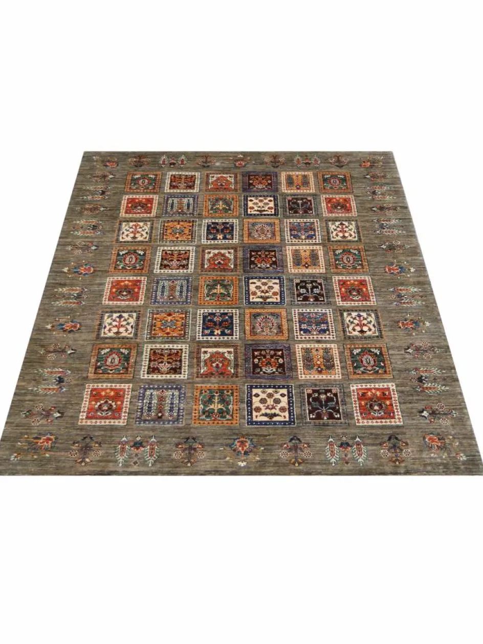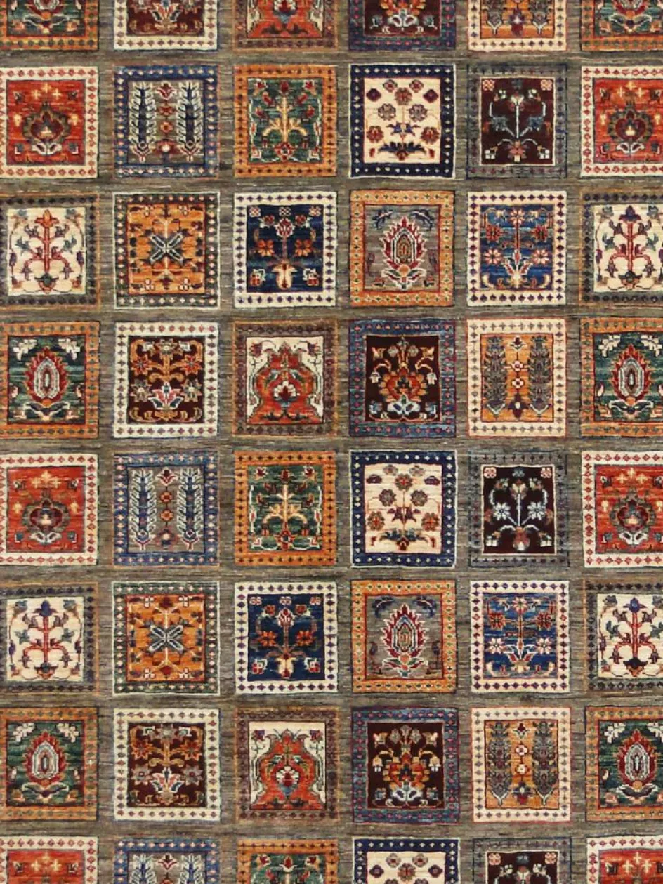 zeigt eine wunderschöne, farbenfrohe Interpretation des traditionellen, persischen Feldermusters. Das persischeFeldermuster