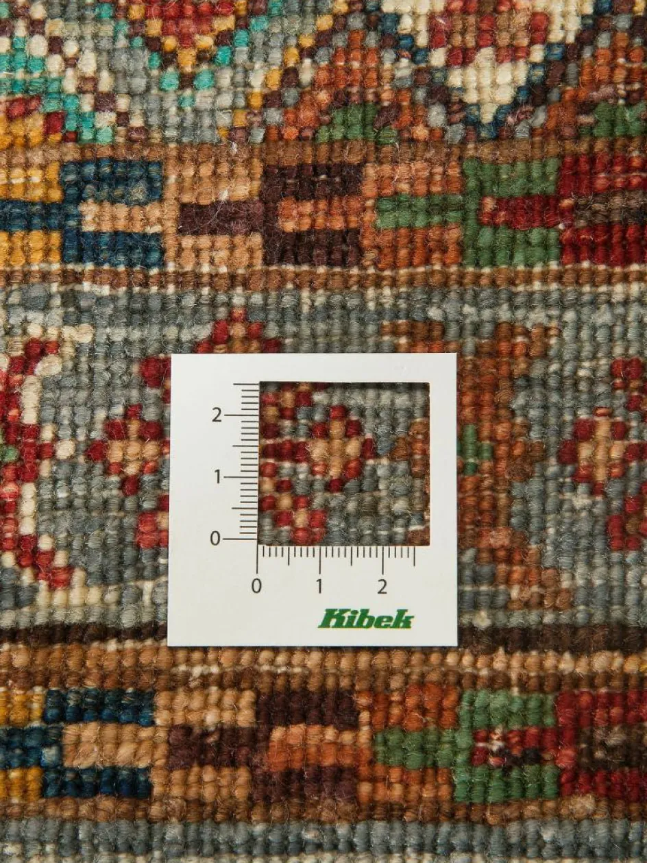 mit bunten Fäden zusammen gebunden. Durch den flachen und festen Flor ist der Teppich unempfindlich gegenüber den Belastungen des Alltags.| Gesamthöhe: | ca. 6 mm |