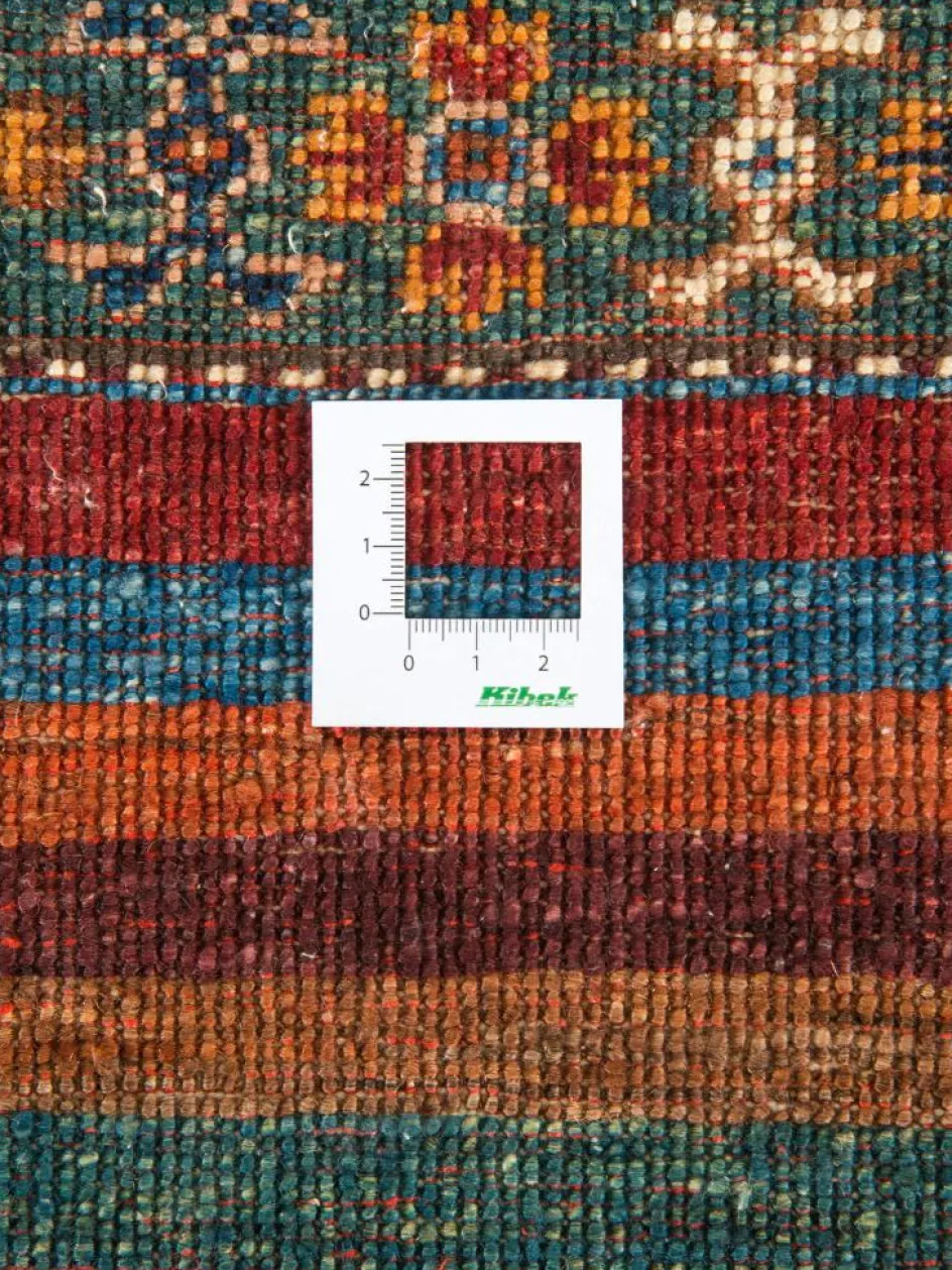 -Muster sind bunte Längsstreifen mit vielen verschiedenen Motiven gefüllt. Durch den flachen und festen Flor ist der Teppich unempfindlich gegenüber den Belastungen des Alltags.- Das Besondere an diesemOrientteppich