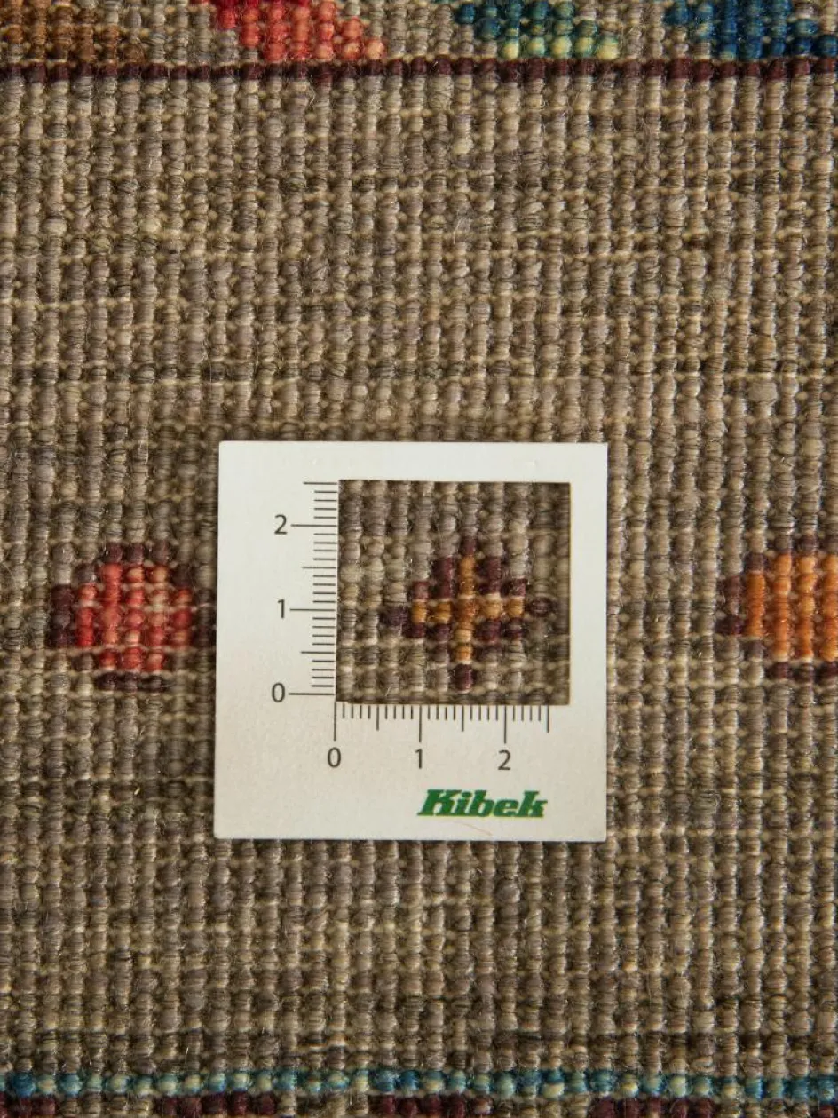 mit bunten Fäden zusammen gebunden. Durch den flachen und festen Flor ist der Teppich unempfindlich gegenüber den Belastungen des Alltags.| Gesamthöhe: | ca. 6 mm |