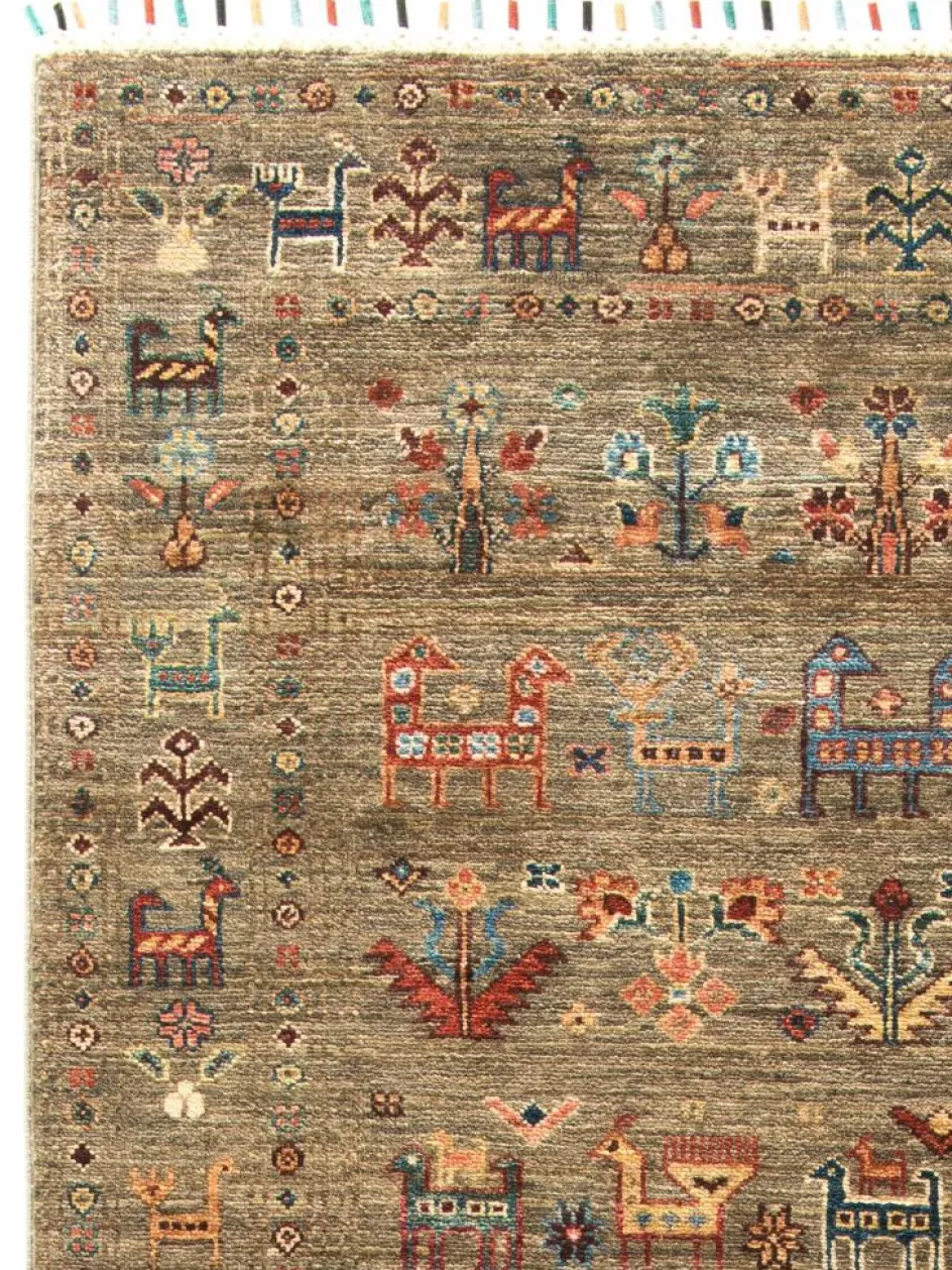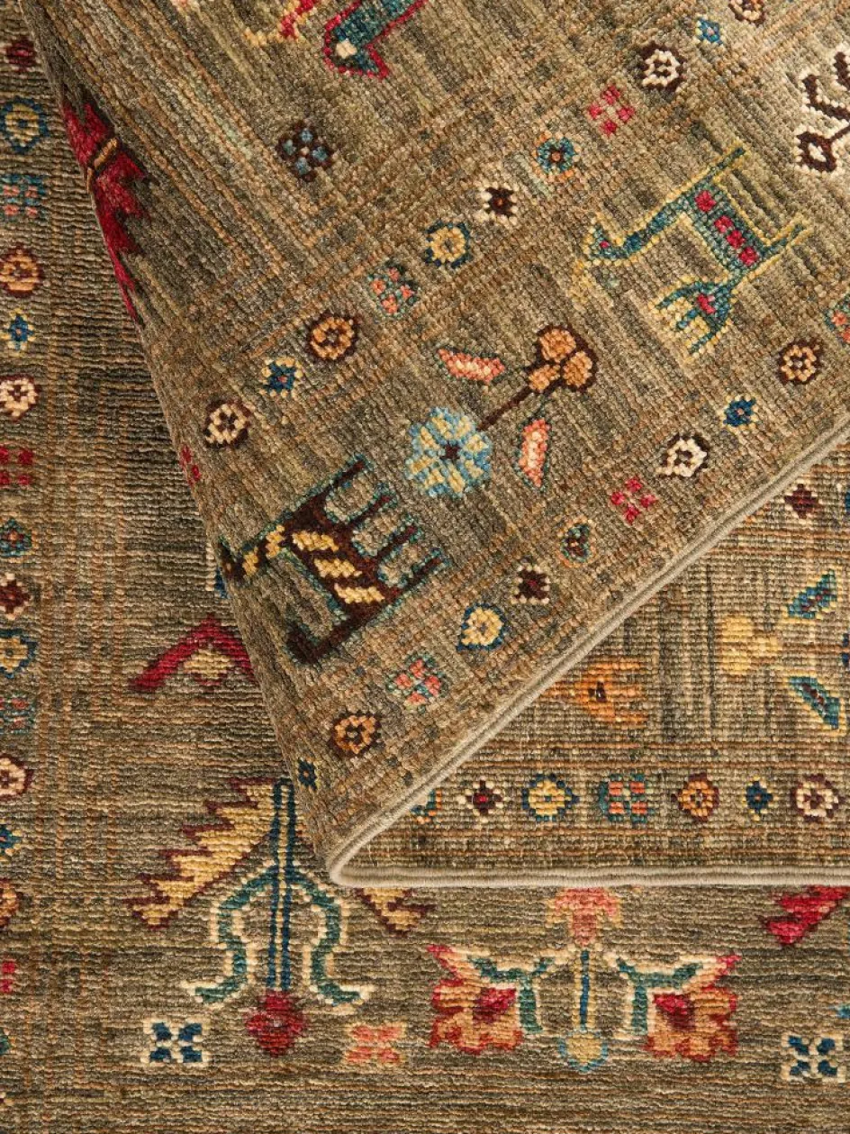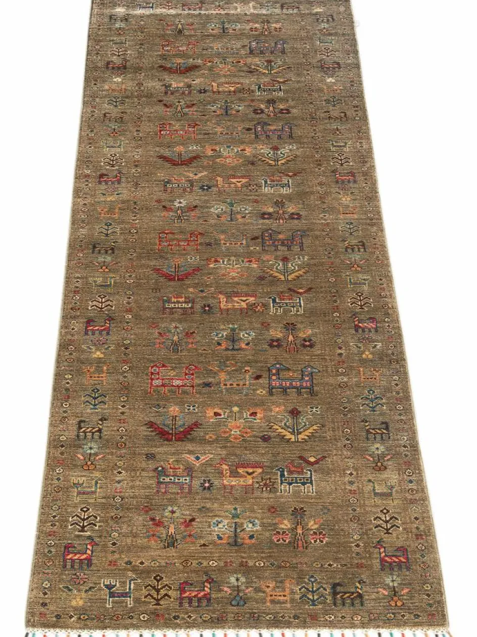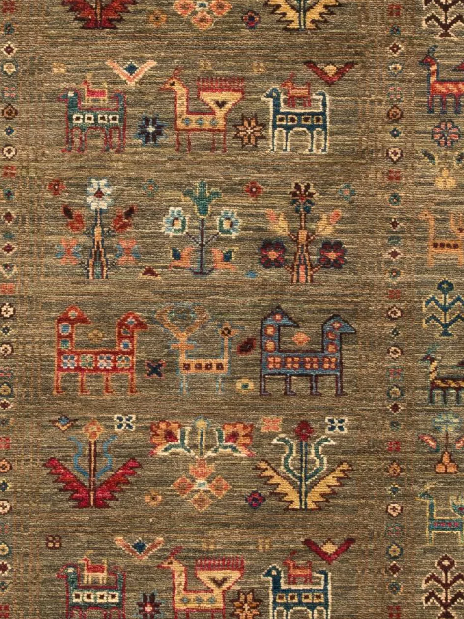 -Muster sind bunte Längsstreifen mit vielen verschiedenen Motiven gefüllt. Durch den flachen und festen Flor ist der Teppich unempfindlich gegenüber den Belastungen des Alltags.- Das Besondere an diesemOrientteppich