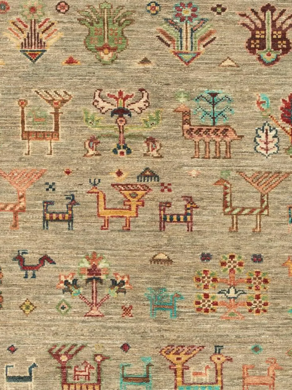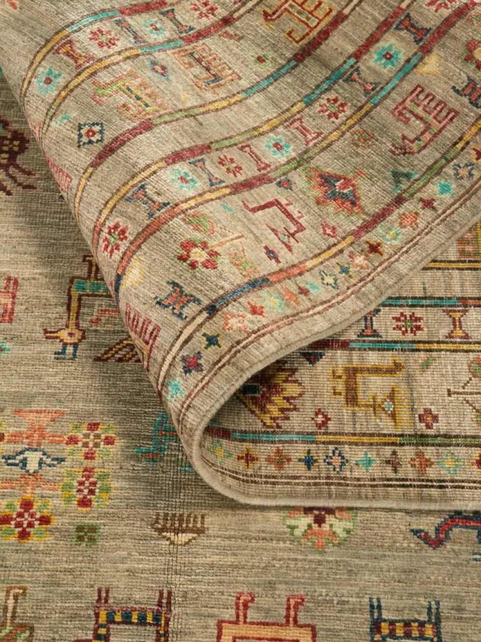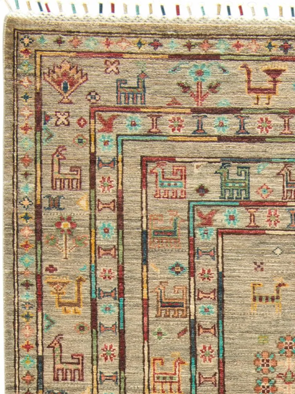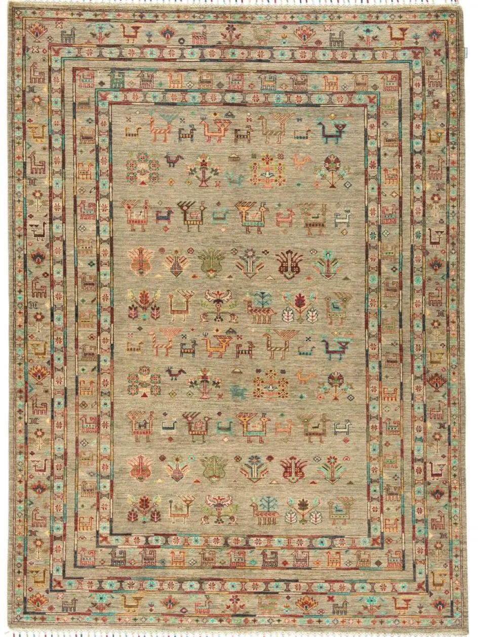-Muster sind bunte Längsstreifen mit vielen verschiedenen Motiven gefüllt. Durch den flachen und festen Flor ist der Teppich unempfindlich gegenüber den Belastungen des Alltags.- Das Besondere an diesemOrientteppich