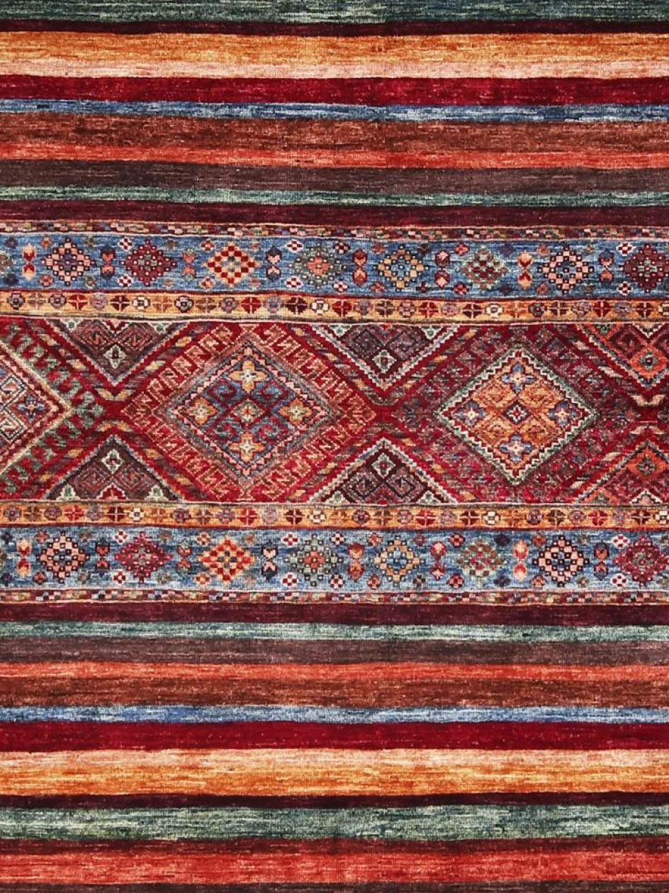 Schal sind farbenfrohe Orientteppiche mit Streifen in vielen verschiedenen Variationen. Einige Teppiche sind längs gestreift und andere quer. Vorbild für diese abwechslungsreichen Streifen ist das persischeMoharamati
