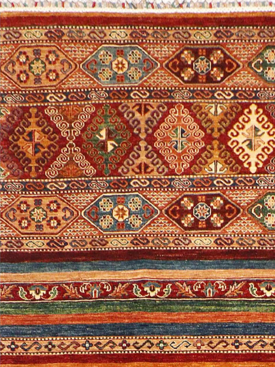 Schal sind farbenfrohe Orientteppiche mit Streifen in vielen verschiedenen Variationen. Einige Teppiche sind längs gestreift und andere quer. Vorbild für diese abwechslungsreichen Streifen ist das persischeMoharamati