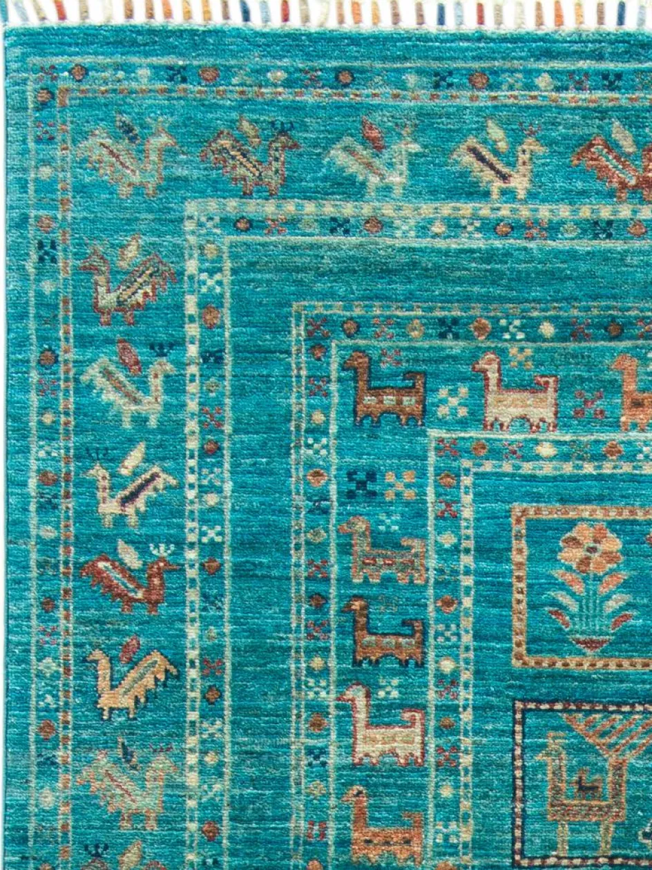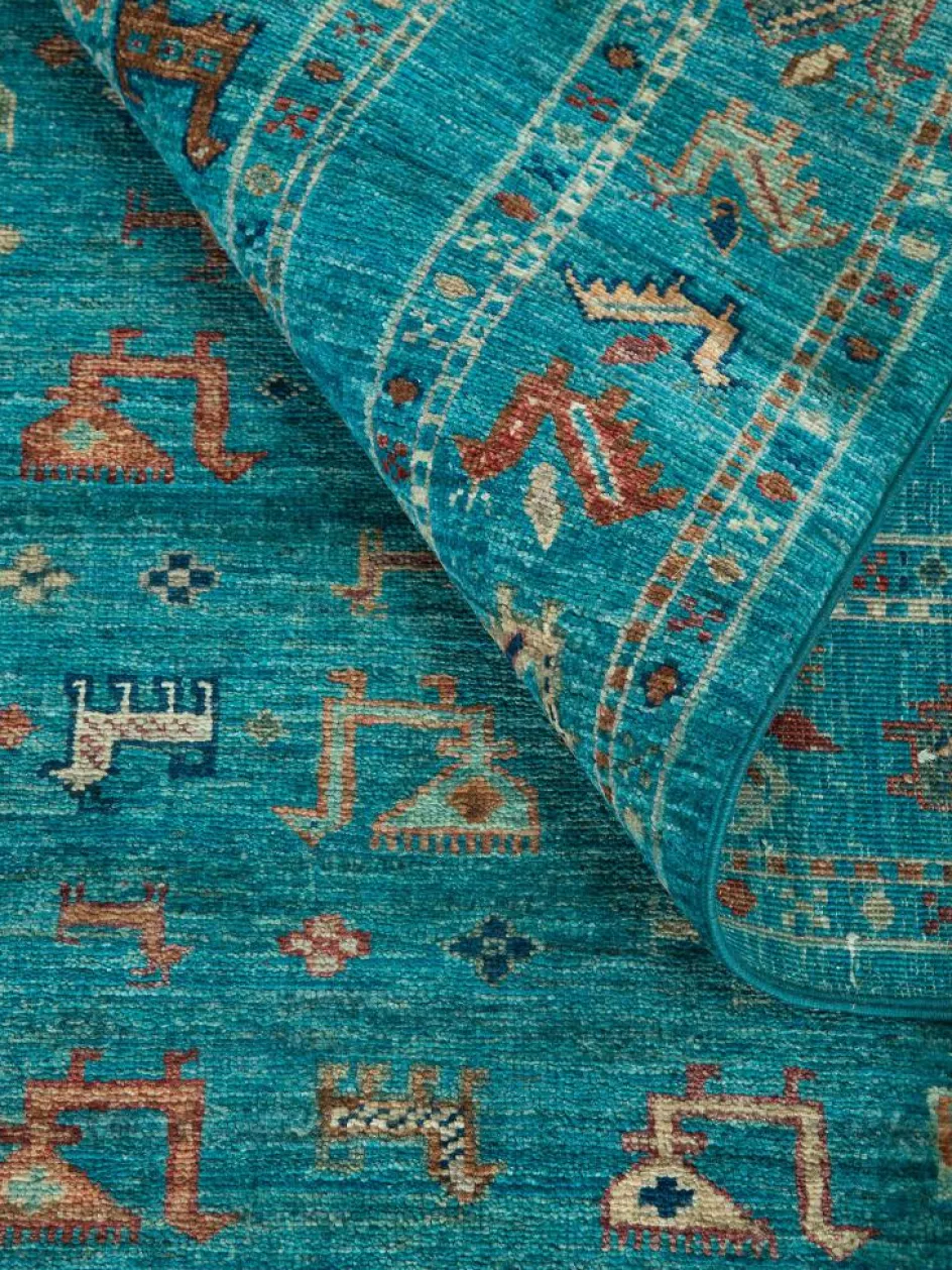 -Muster sind bunte Längsstreifen mit vielen verschiedenen Motiven gefüllt. Durch den flachen und festen Flor ist der Teppich unempfindlich gegenüber den Belastungen des Alltags.- Das Besondere an diesemOrientteppich