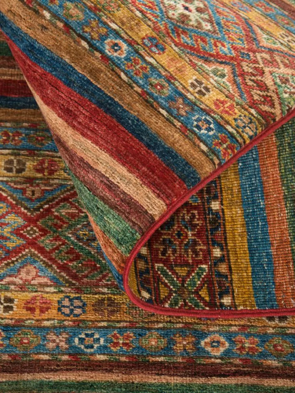 Schal sind farbenfrohe Orientteppiche mit Streifen in vielen verschiedenen Variationen. Einige Teppiche sind längs gestreift und andere quer. Vorbild für diese abwechslungsreichen Streifen ist das persischeMoharamati