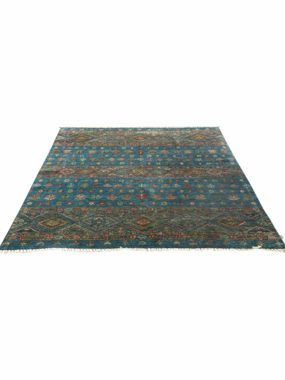 mit bunten Fäden zusammen gebunden. Durch den flachen und festen Flor ist der Teppich unempfindlich gegenüber den Belastungen des Alltags.| Gesamthöhe: | ca. 6 mm |