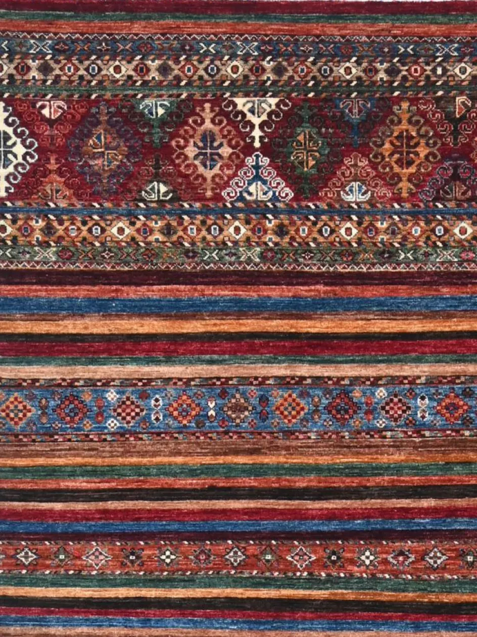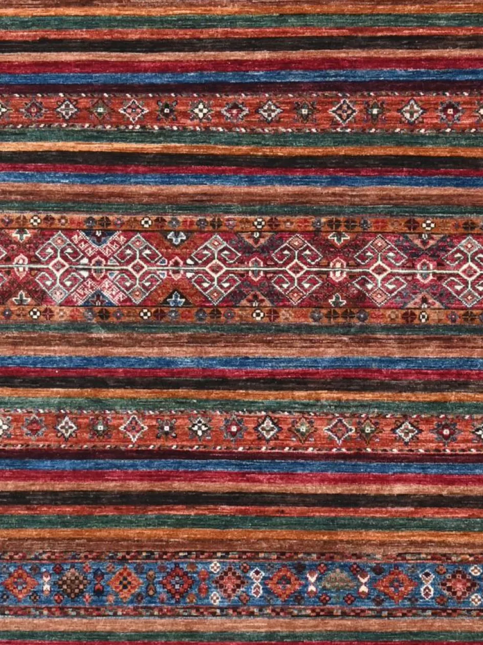 Schal sind farbenfrohe Orientteppiche mit Streifen in vielen verschiedenen Variationen. Einige Teppiche sind längs gestreift und andere quer. Vorbild für diese abwechslungsreichen Streifen ist das persischeMoharamati