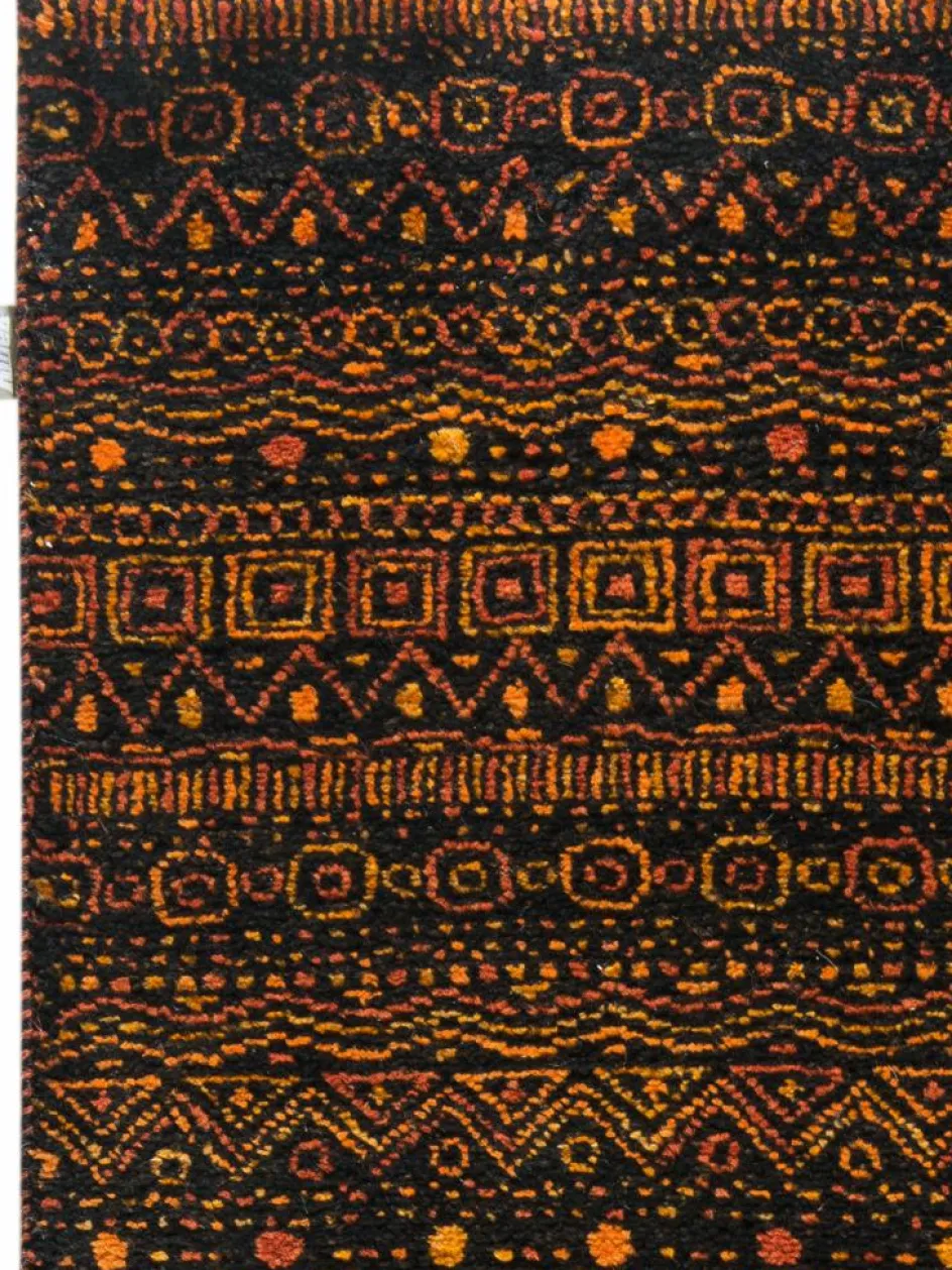 ist eine ungewöhnliche moderne Variation des traditionellen persichen Gabbehs. Er ist kürzer im Flor und feiner geknüpft. Es gibt zahllose Neukreationen in individuellen und einzigartigen Farben und Mustern.| Gesamthöhe: | ca. 10 mm |