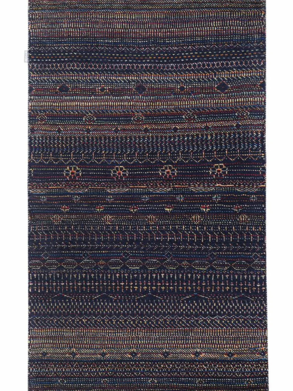 ist eine ungewöhnliche moderne Variation des traditionellen persichen Gabbehs. Er ist kürzer im Flor und feiner geknüpft. Es gibt zahllose Neukreationen in individuellen und einzigartigen Farben und Mustern.| Gesamthöhe: | ca. 10 mm |