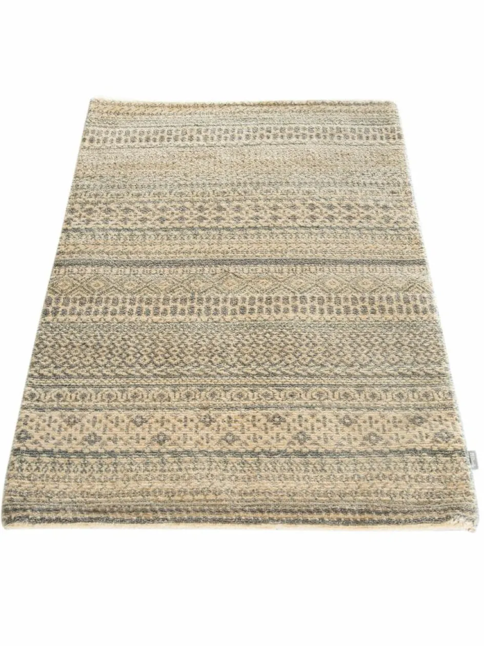 ist eine ungewöhnliche moderne Variation des traditionellen persichen Gabbehs. Er ist kürzer im Flor und feiner geknüpft. Es gibt zahllose Neukreationen in individuellen und einzigartigen Farben und Mustern.| Gesamthöhe: | ca. 10 mm |