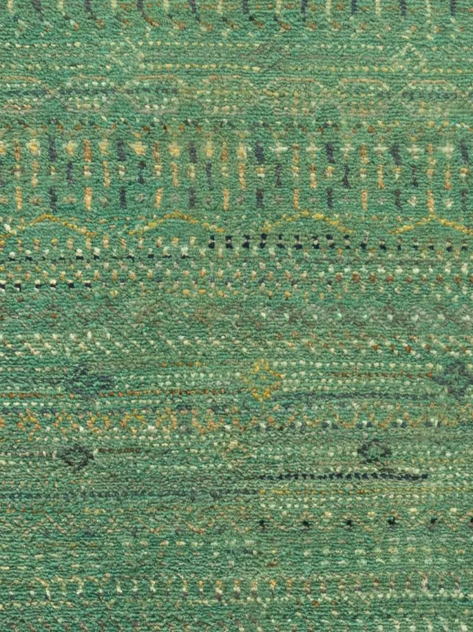 ist eine ungewöhnliche moderne Variation des traditionellen persichen Gabbehs. Er ist kürzer im Flor und feiner geknüpft. Es gibt zahllose Neukreationen in individuellen und einzigartigen Farben und Mustern.| Gesamthöhe: | ca. 7 mm |