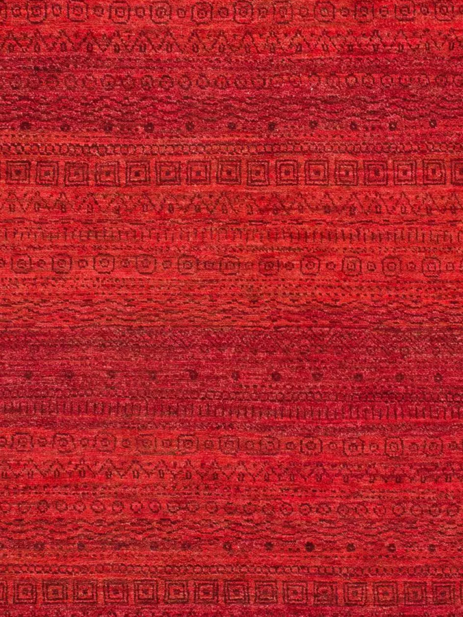 ist eine ungewöhnliche moderne Variation des traditionellen persichen Gabbehs. Er ist kürzer im Flor und feiner geknüpft. Es gibt zahllose Neukreationen in individuellen und einzigartigen Farben und Mustern.| Gesamthöhe: | ca. 10 mm |