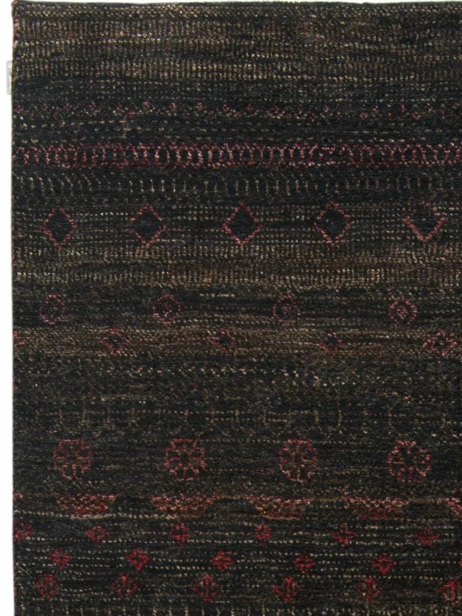 ist eine ungewöhnliche moderne Variation des traditionellen persichen Gabbehs. Er ist kürzer im Flor und feiner geknüpft. Es gibt zahllose Neukreationen in individuellen und einzigartigen Farben und Mustern.| Gesamthöhe: | ca. 9 mm |