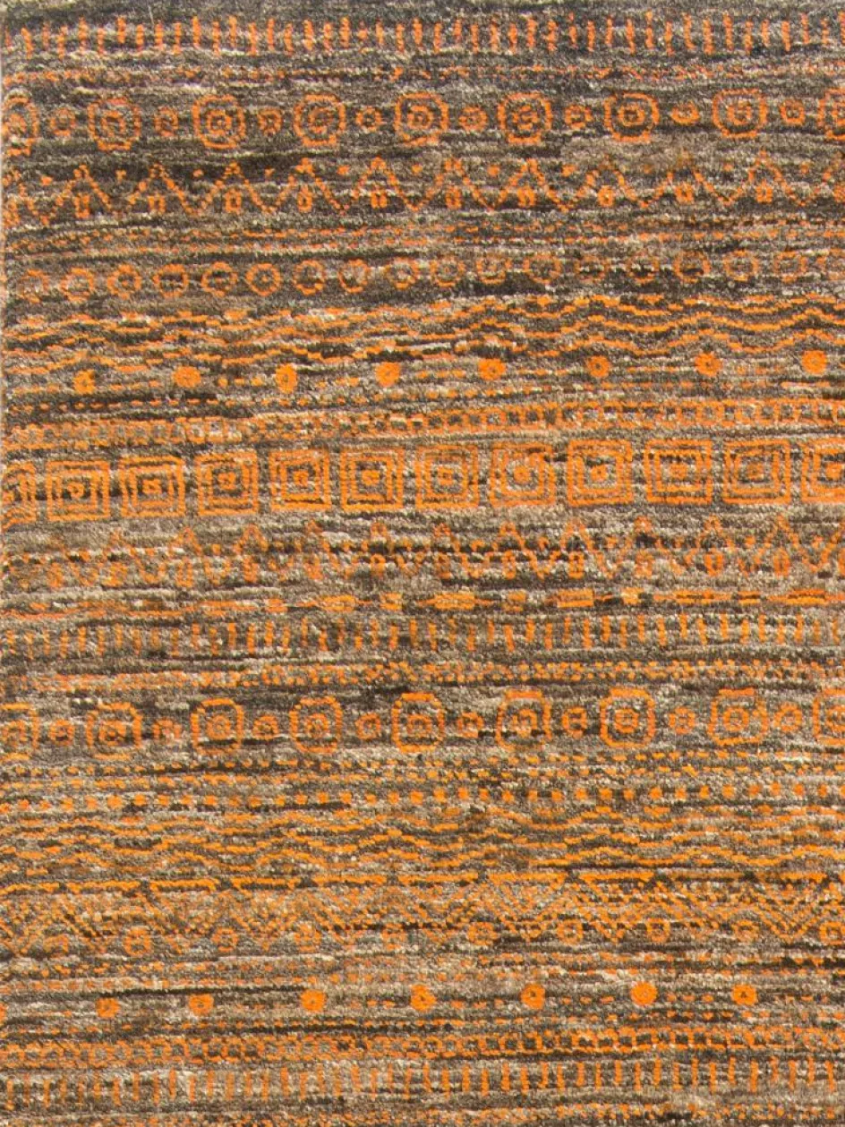 ist eine ungewöhnliche moderne Variation des traditionellen persichen Gabbehs. Er ist kürzer im Flor und feiner geknüpft. Es gibt zahllose Neukreationen in individuellen und einzigartigen Farben und Mustern.| Gesamthöhe: | ca. 10 mm |
