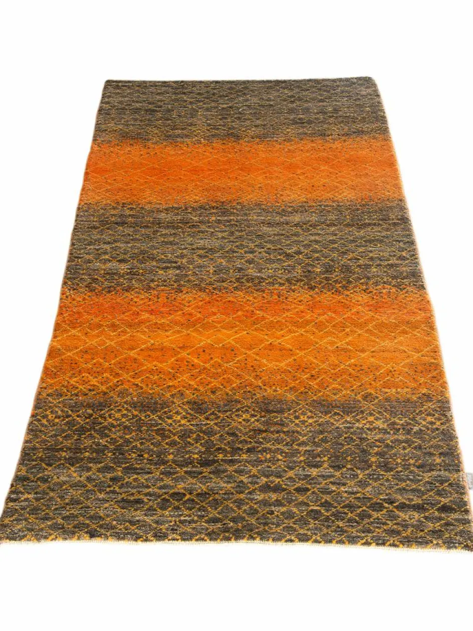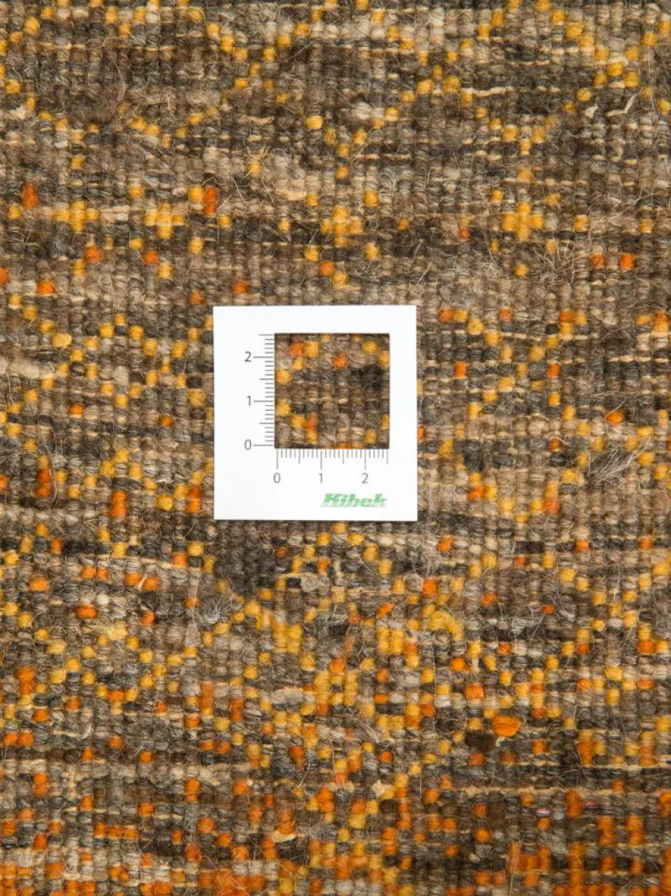 ist eine ungewöhnliche moderne Variation des traditionellen persichen Gabbehs. Er ist kürzer im Flor und feiner geknüpft. Es gibt zahllose Neukreationen in individuellen und einzigartigen Farben und Mustern.| Gesamthöhe: | ca. 10 mm |