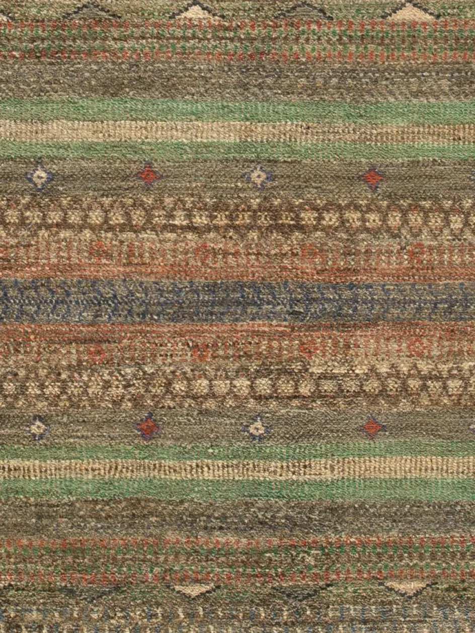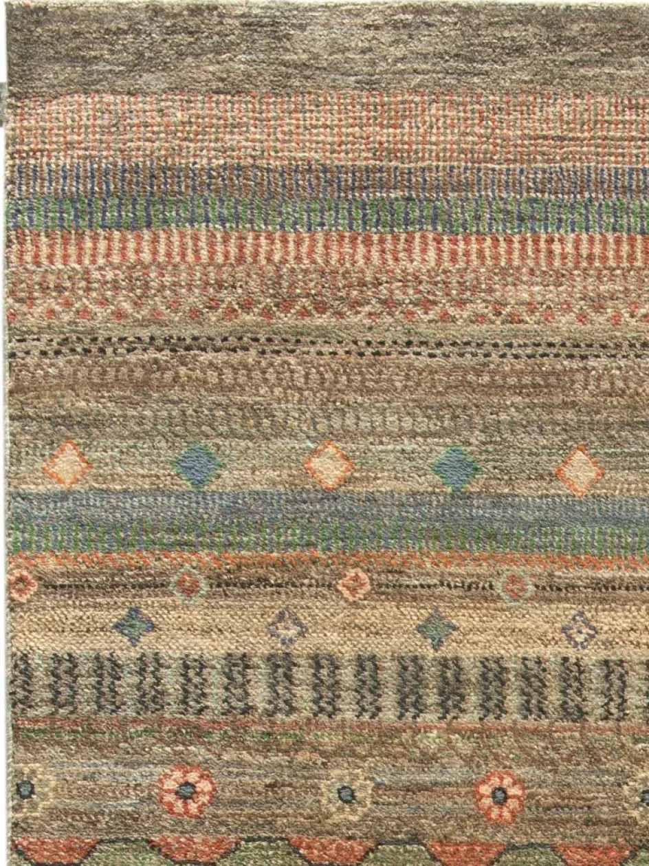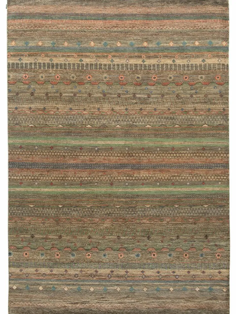 ist eine ungewöhnliche moderne Variation des traditionellen persichen Gabbehs. Er ist kürzer im Flor und feiner geknüpft. Es gibt zahllose Neukreationen in individuellen und einzigartigen Farben und Mustern.| Gesamthöhe: | ca. 7 mm |