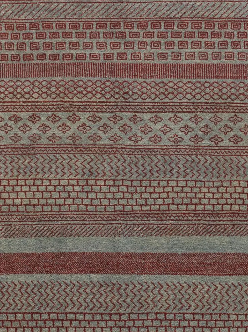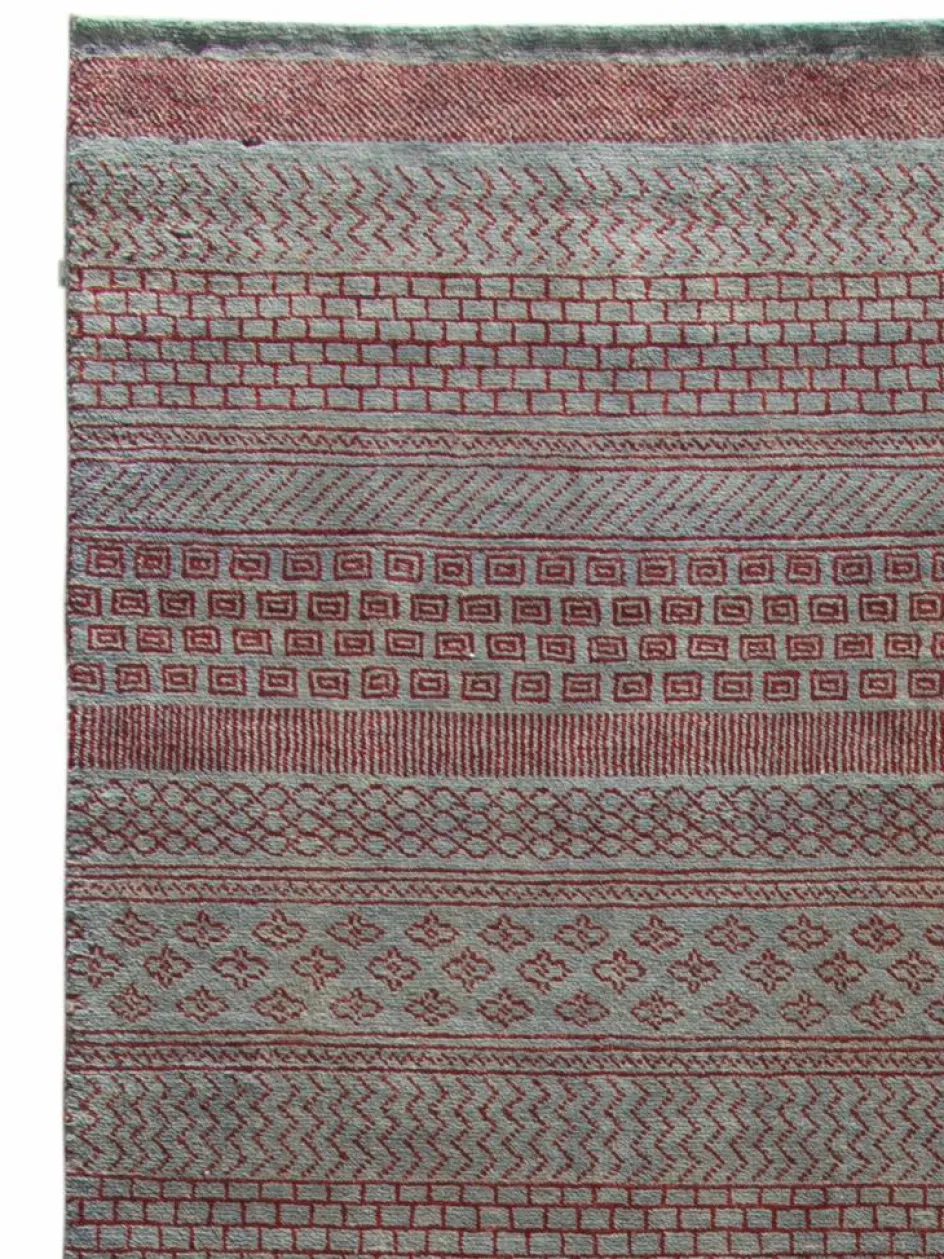 ist eine ungewöhnliche moderne Variation des traditionellen persichen Gabbehs. Er ist kürzer im Flor und feiner geknüpft. Es gibt zahllose Neukreationen in individuellen und einzigartigen Farben und Mustern.| Gesamthöhe: | ca. 12 mm |