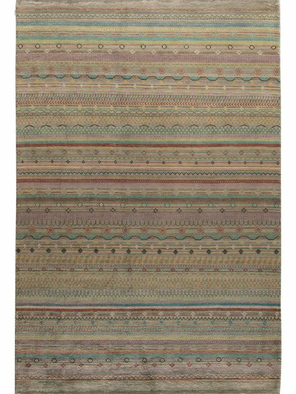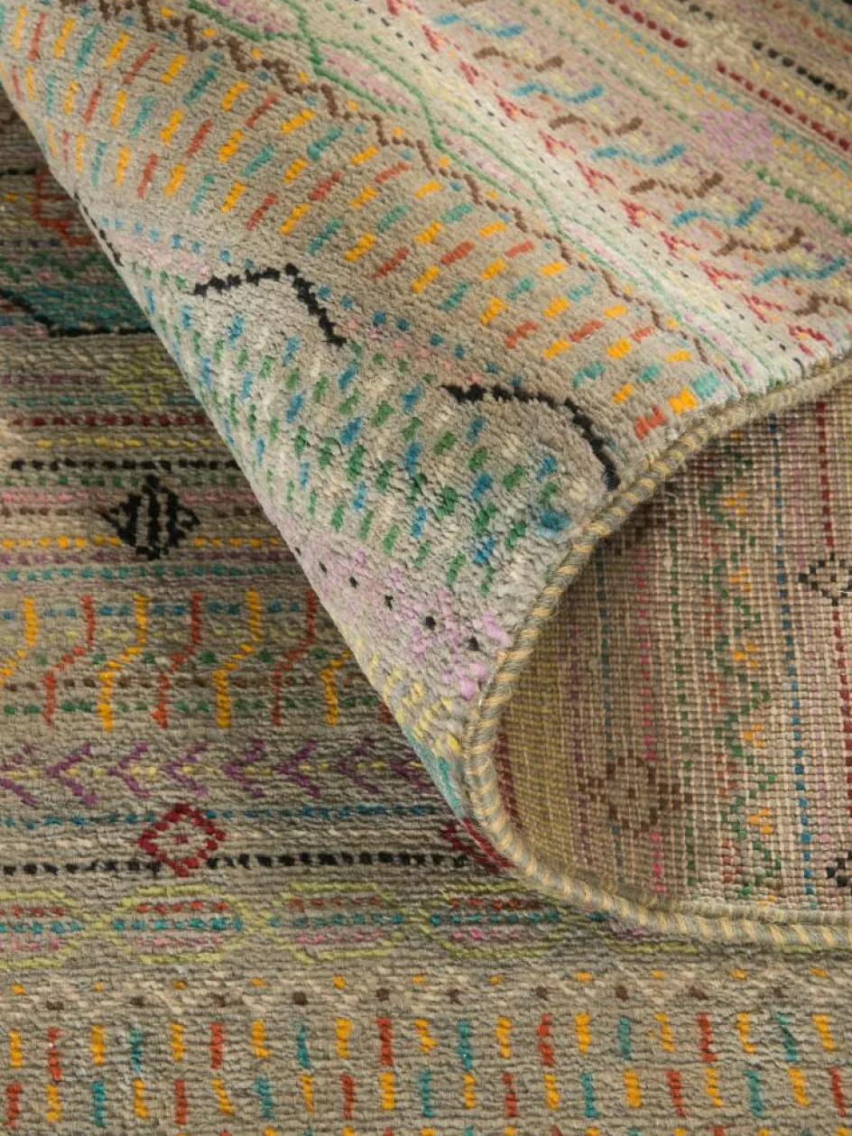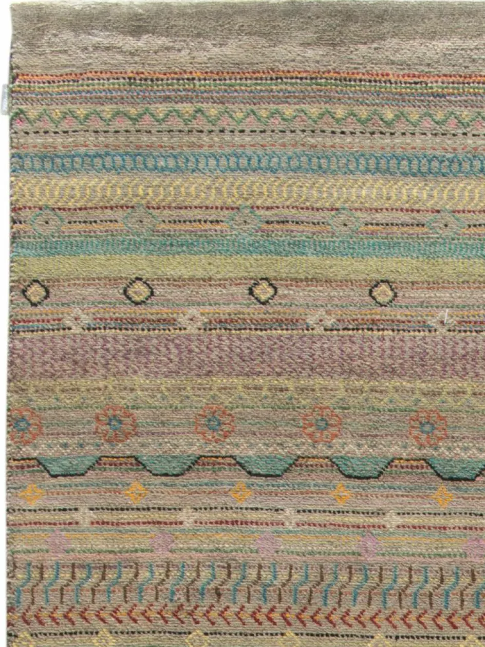 ist eine ungewöhnliche moderne Variation des traditionellen persichen Gabbehs. Er ist kürzer im Flor und feiner geknüpft. Es gibt zahllose Neukreationen in individuellen und einzigartigen Farben und Mustern.| Gesamthöhe: | ca. 10 mm |