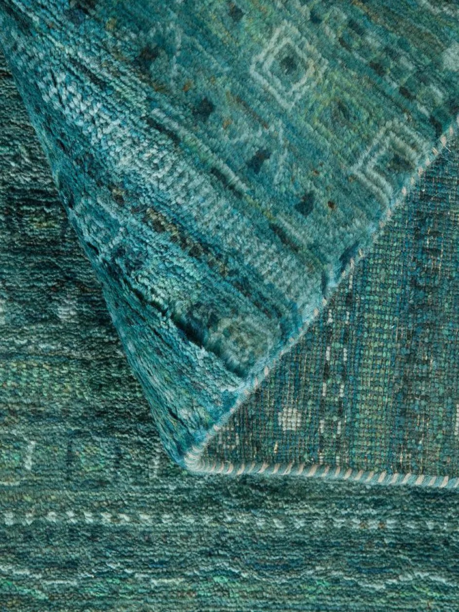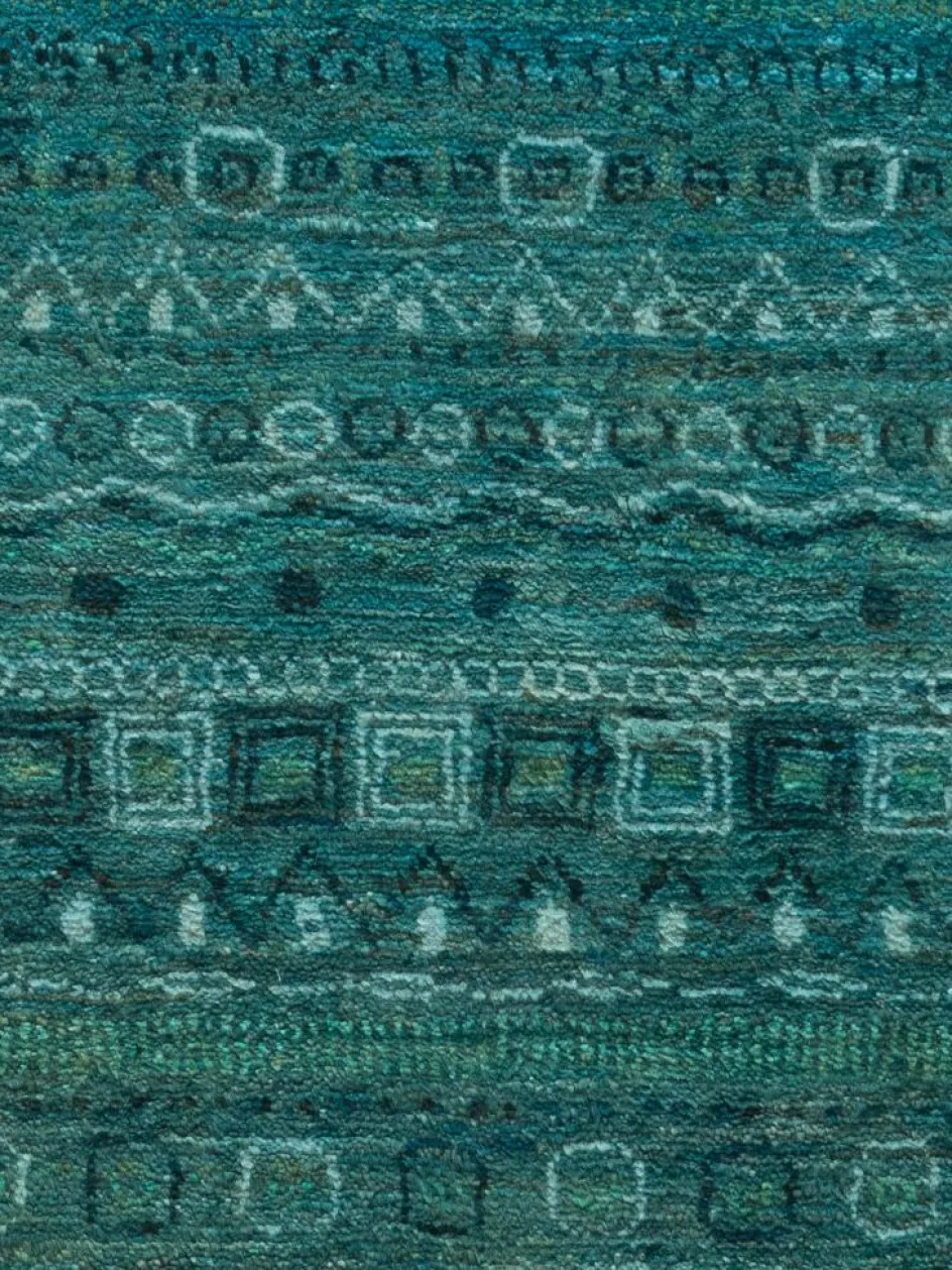 ist eine ungewöhnliche moderne Variation des traditionellen persichen Gabbehs. Er ist kürzer im Flor und feiner geknüpft. Es gibt zahllose Neukreationen in individuellen und einzigartigen Farben und Mustern.| Gesamthöhe: | ca. 10 mm |