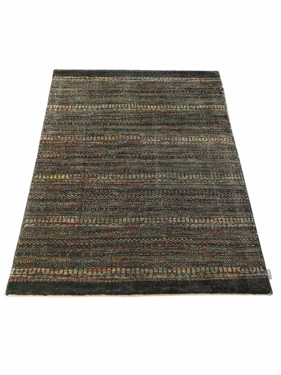ist eine ungewöhnliche moderne Variation des traditionellen persichen Gabbehs. Er ist kürzer im Flor und feiner geknüpft. Es gibt zahllose Neukreationen in individuellen und einzigartigen Farben und Mustern.| Gesamthöhe: | ca. 10 mm |