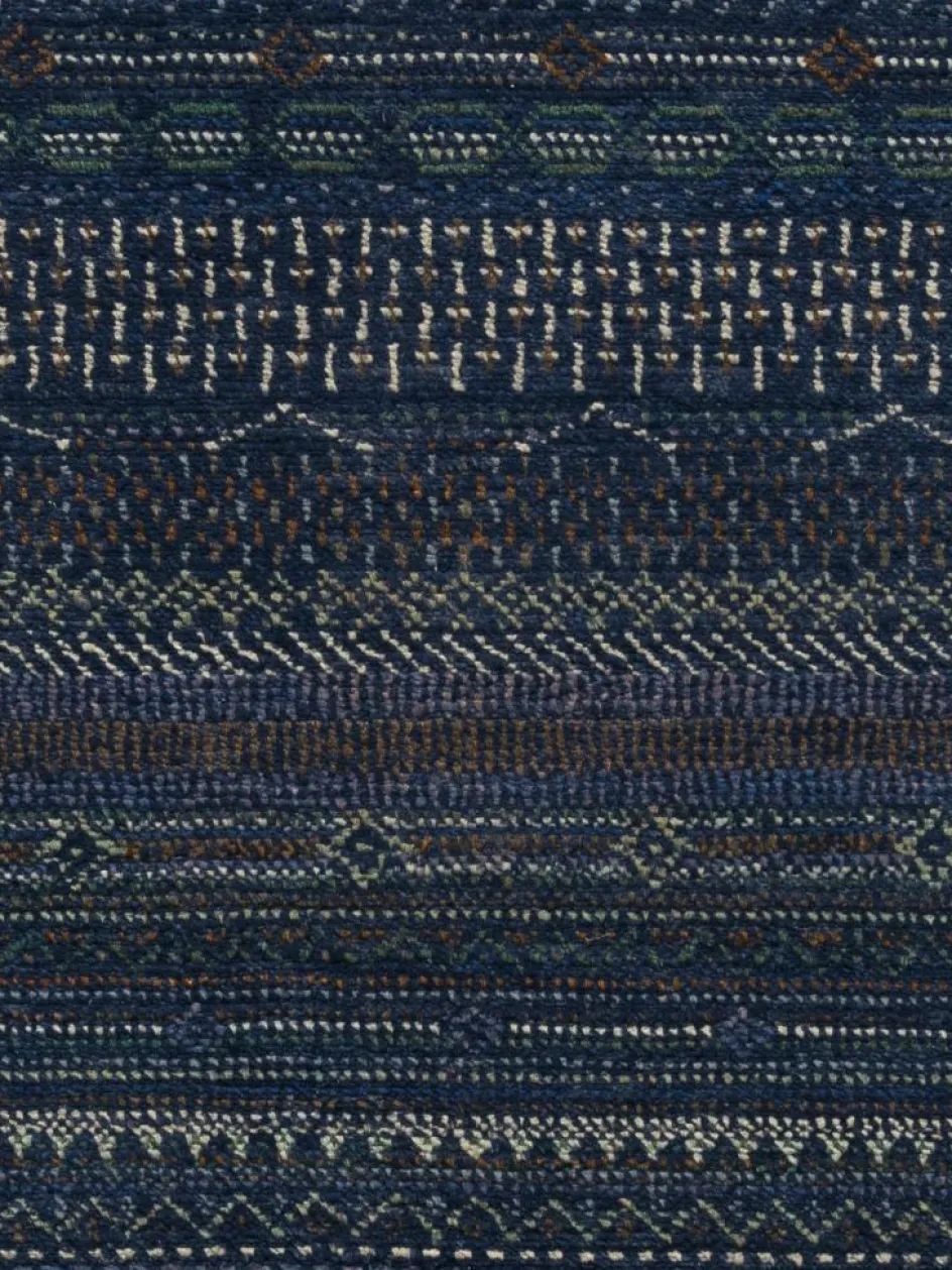 ist eine ungewöhnliche moderne Variation des traditionellen persichen Gabbehs. Er ist kürzer im Flor und feiner geknüpft. Es gibt zahllose Neukreationen in individuellen und einzigartigen Farben und Mustern.| Gesamthöhe: | ca. 10 mm |