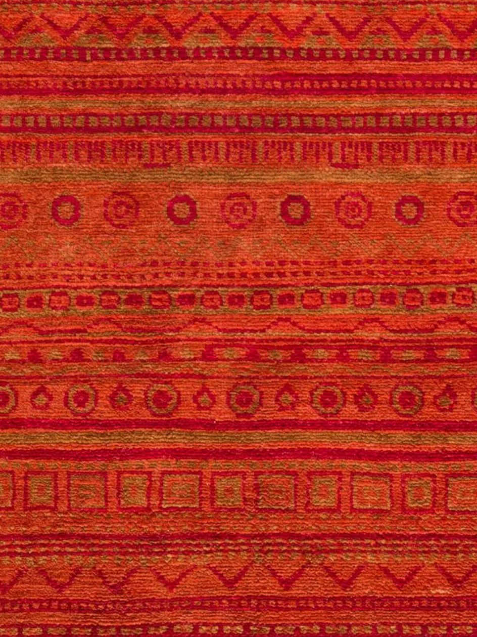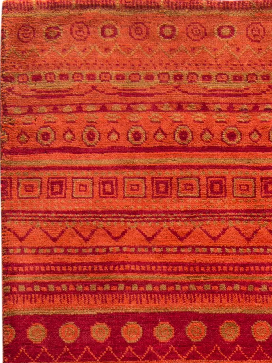 ist eine ungewöhnliche moderne Variation des traditionellen persichen Gabbehs. Er ist kürzer im Flor und feiner geknüpft. Es gibt zahllose Neukreationen in individuellen und einzigartigen Farben und Mustern. Fein geknüpft inDouble-Knot