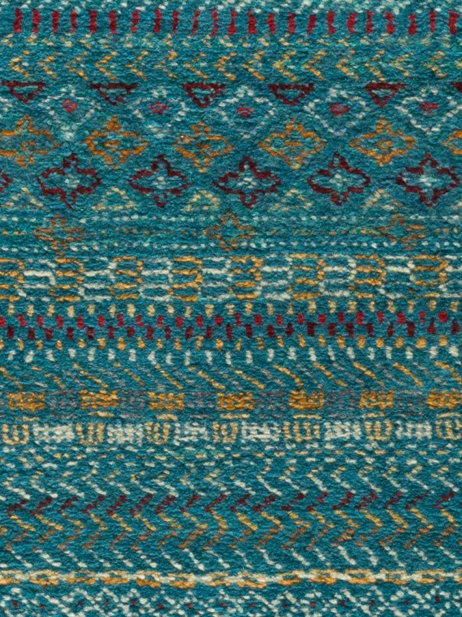 ist eine ungewöhnliche moderne Variation des traditionellen persichen Gabbehs. Er ist kürzer im Flor und feiner geknüpft. Es gibt zahllose Neukreationen in individuellen und einzigartigen Farben und Mustern.| Gesamthöhe: | ca. 10 mm |