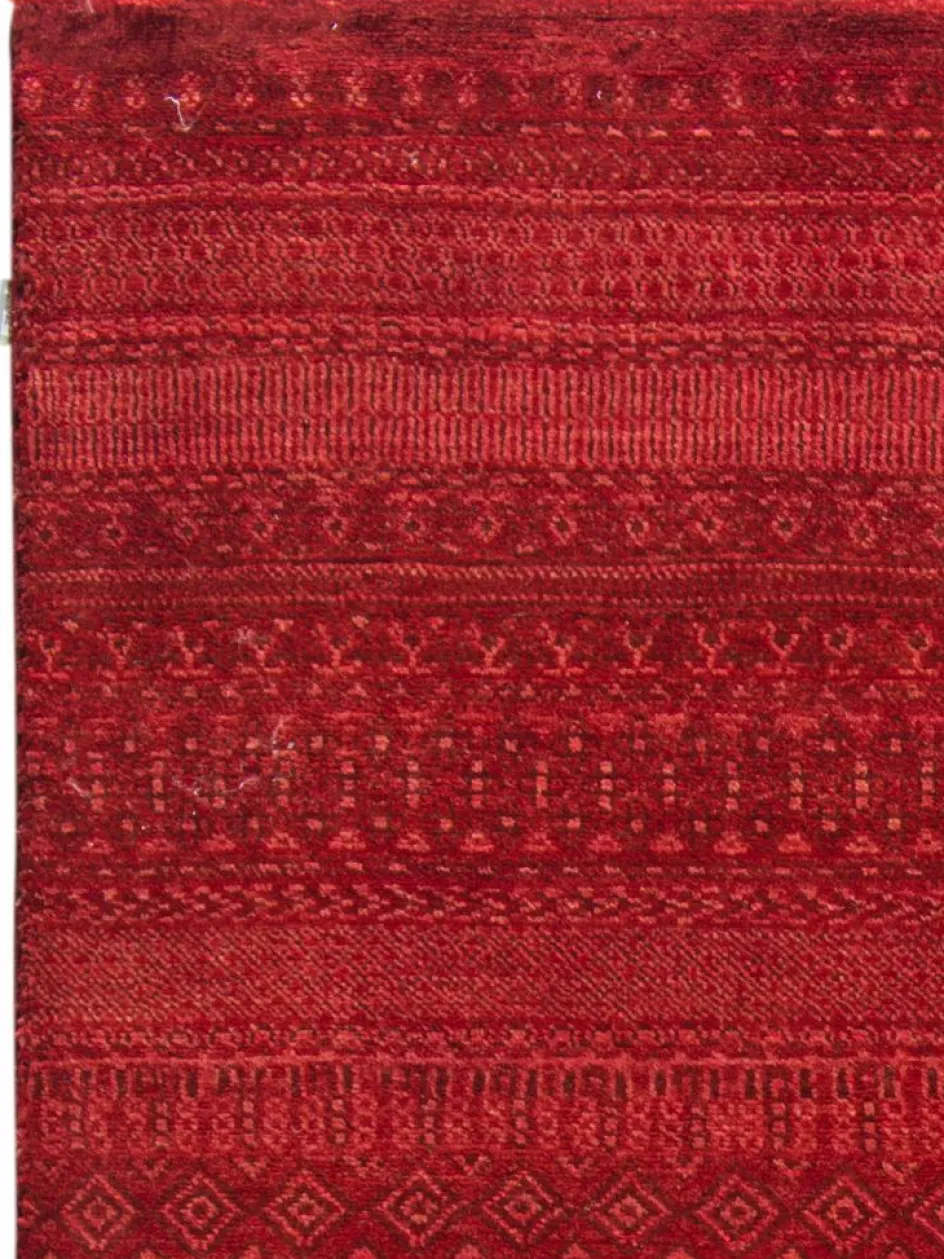 ist eine ungewöhnliche moderne Variation des traditionellen persichen Gabbehs. Er ist kürzer im Flor und feiner geknüpft. Es gibt zahllose Neukreationen in individuellen und einzigartigen Farben und Mustern.| Gesamthöhe: | ca. 10 mm |