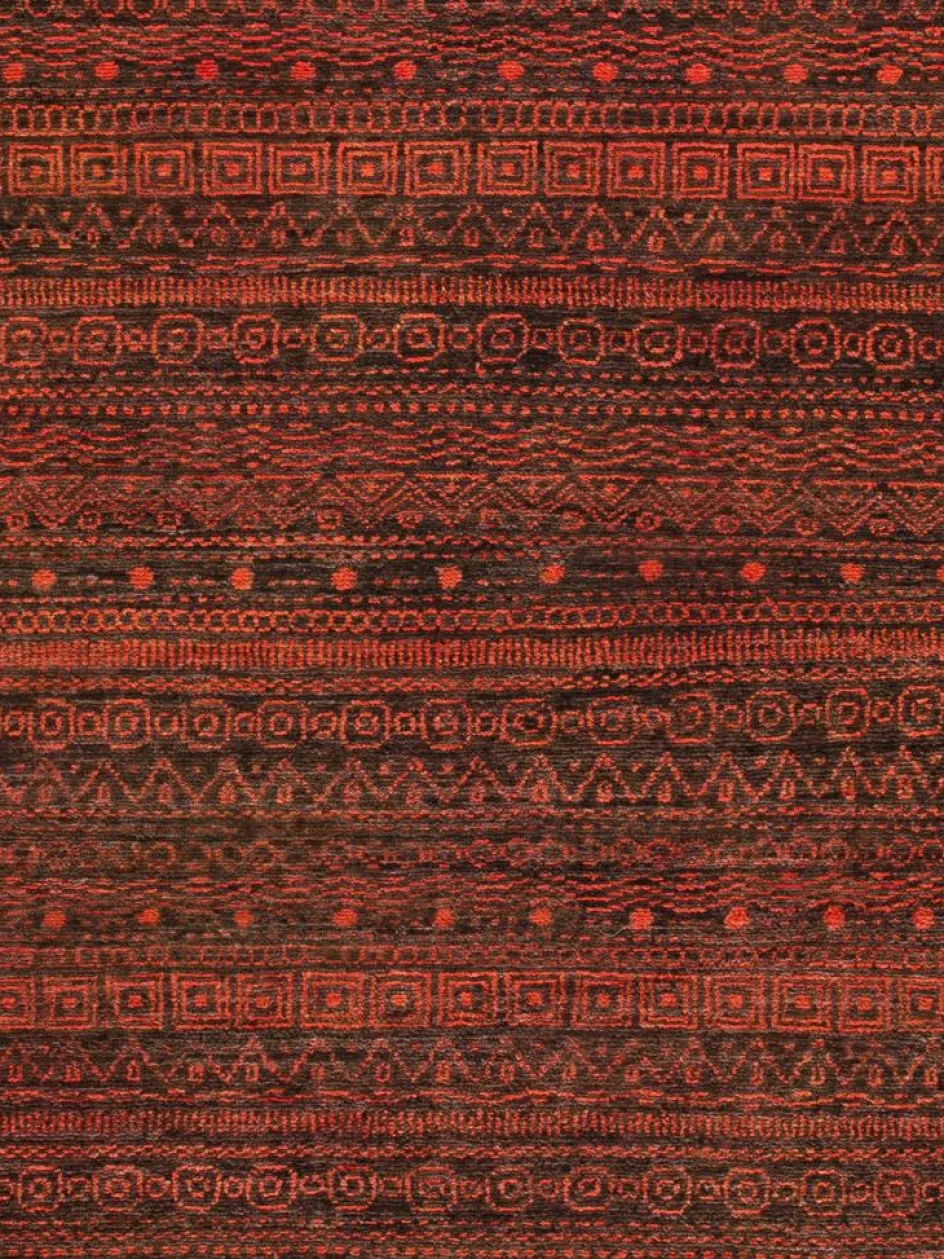 ist eine ungewöhnliche moderne Variation des traditionellen persichen Gabbehs. Er ist kürzer im Flor und feiner geknüpft. Es gibt zahllose Neukreationen in individuellen und einzigartigen Farben und Mustern.| Gesamthöhe: | ca. 9 mm |