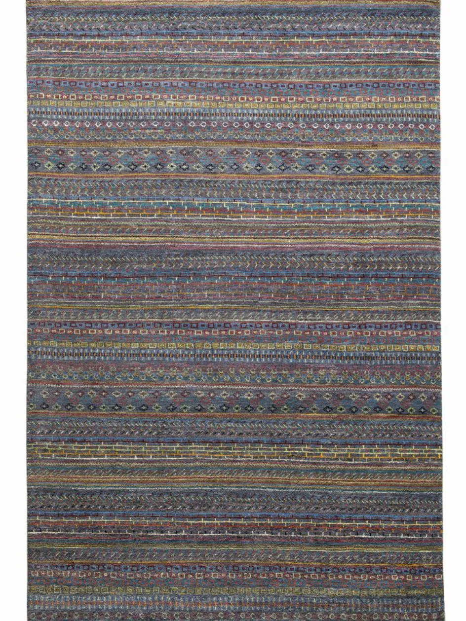 ist eine ungewöhnliche moderne Variation des traditionellen persichen Gabbehs. Er ist kürzer im Flor und feiner geknüpft. Es gibt zahllose Neukreationen in individuellen und einzigartigen Farben und Mustern. – Fein geknüpft inDouble-Knot