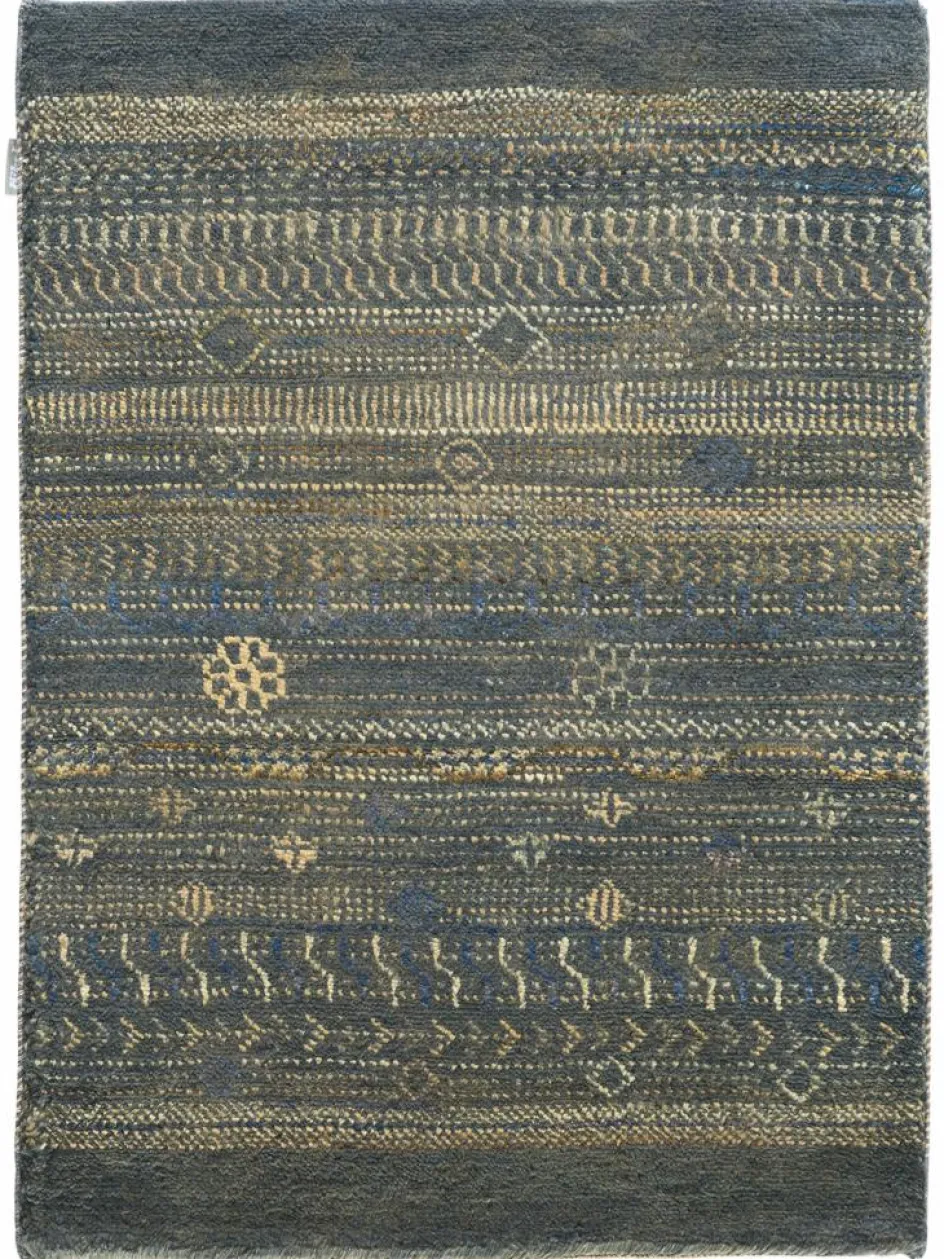 ist eine ungewöhnliche moderne Variation des traditionellen persichen Gabbehs. Er ist kürzer im Flor und feiner geknüpft. Es gibt zahllose Neukreationen in individuellen und einzigartigen Farben und Mustern.| Gesamthöhe: | ca. 7 mm |