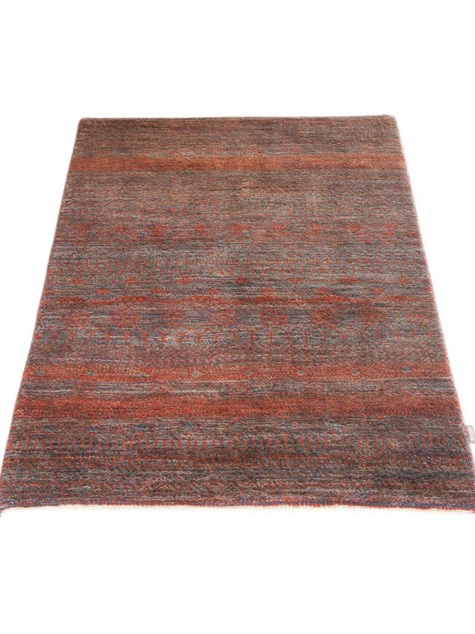 ist eine ungewöhnliche moderne Variation des traditionellen persichen Gabbehs. Er ist kürzer im Flor und feiner geknüpft. Es gibt zahllose Neukreationen in individuellen und einzigartigen Farben und Mustern.| Gesamthöhe: | ca. 10 mm |