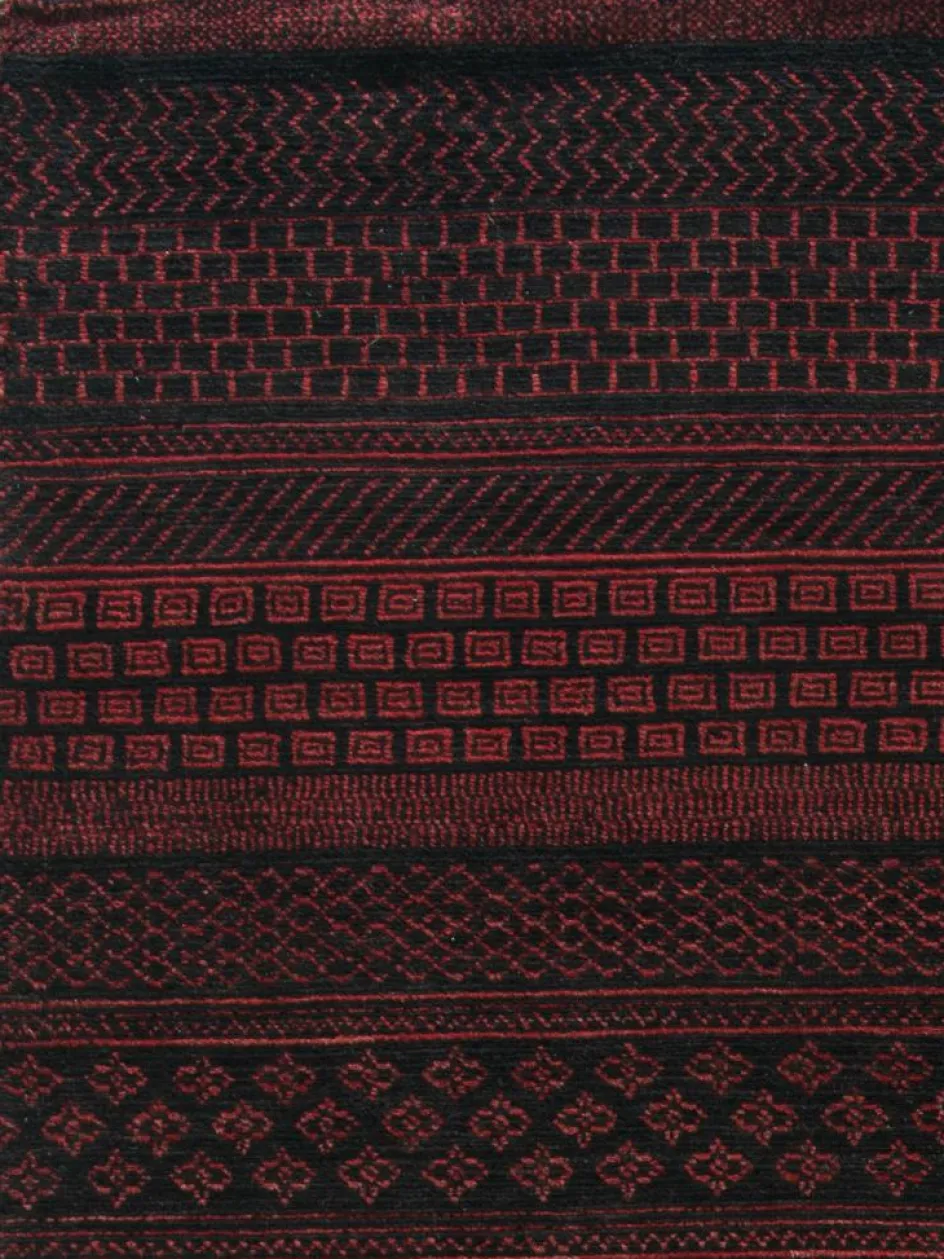 ist eine ungewöhnliche moderne Variation des traditionellen persichen Gabbehs. Er ist kürzer im Flor und feiner geknüpft. Es gibt zahllose Neukreationen in individuellen und einzigartigen Farben und Mustern.| Gesamthöhe: | ca. 10 mm |