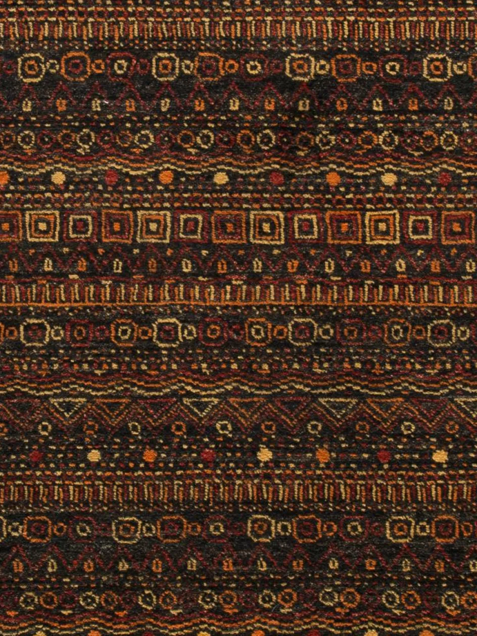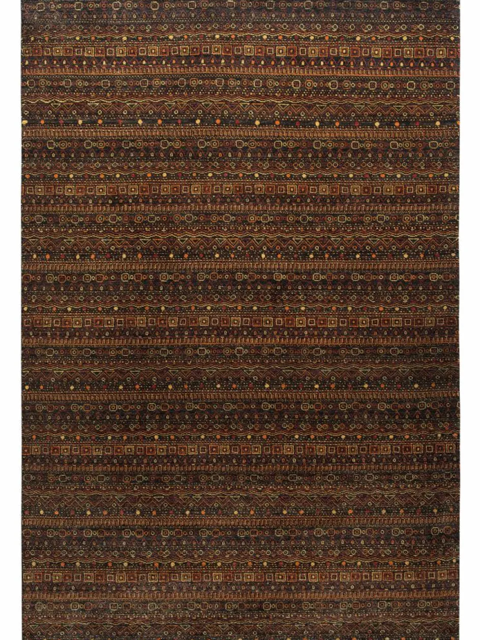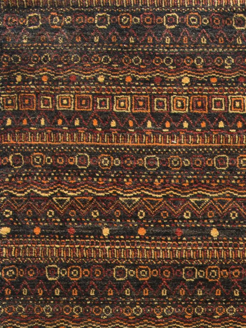 ist eine ungewöhnliche moderne Variation des traditionellen persichen Gabbehs. Er ist kürzer im Flor und feiner geknüpft. Es gibt zahllose Neukreationen in individuellen und einzigartigen Farben und Mustern.| Gesamthöhe: | ca. 10 mm |