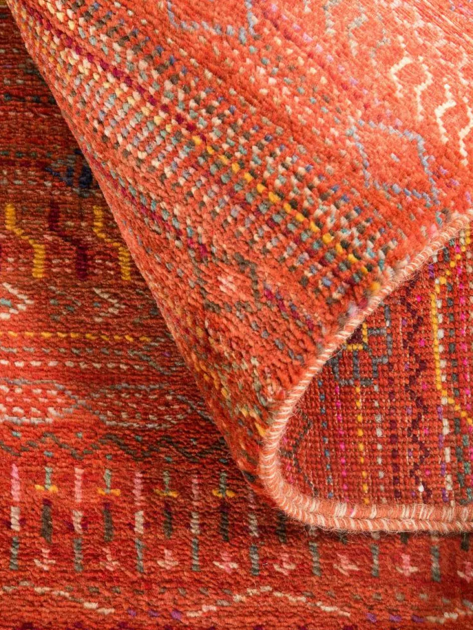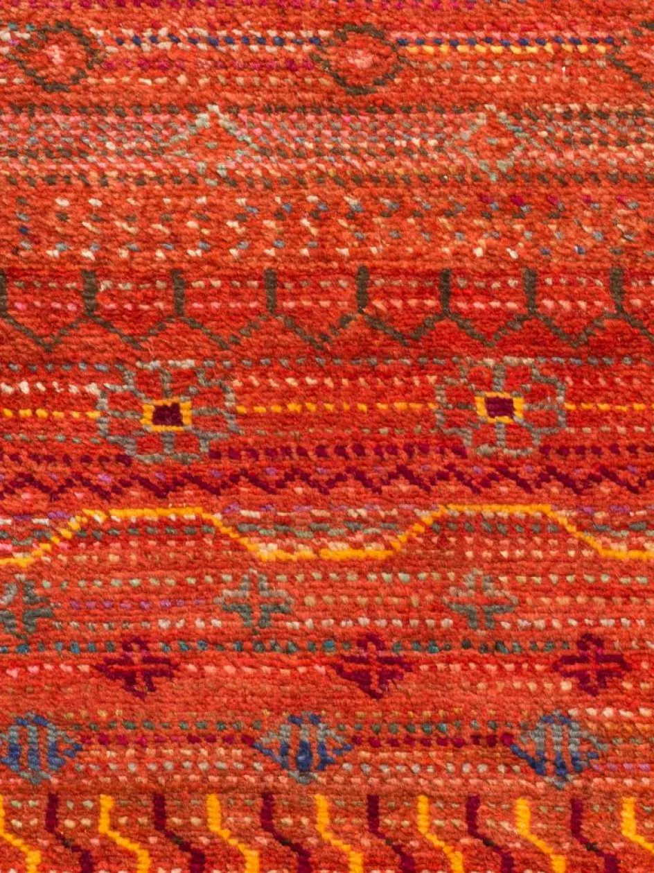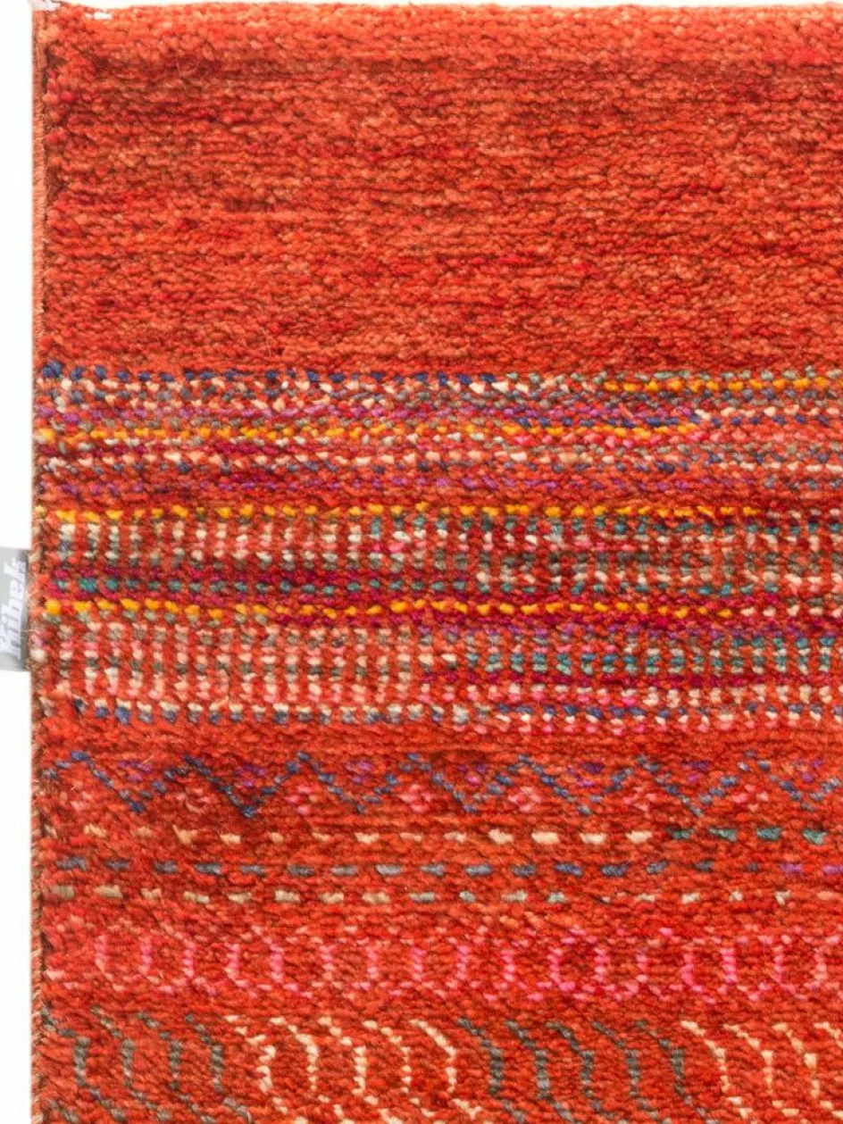 ist eine ungewöhnliche moderne Variation des traditionellen persichen Gabbehs. Er ist kürzer im Flor und feiner geknüpft. Es gibt zahllose Neukreationen in individuellen und einzigartigen Farben und Mustern. – Fein geknüpft inDouble-Knot