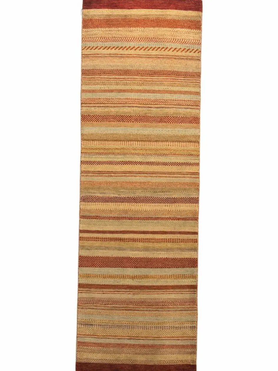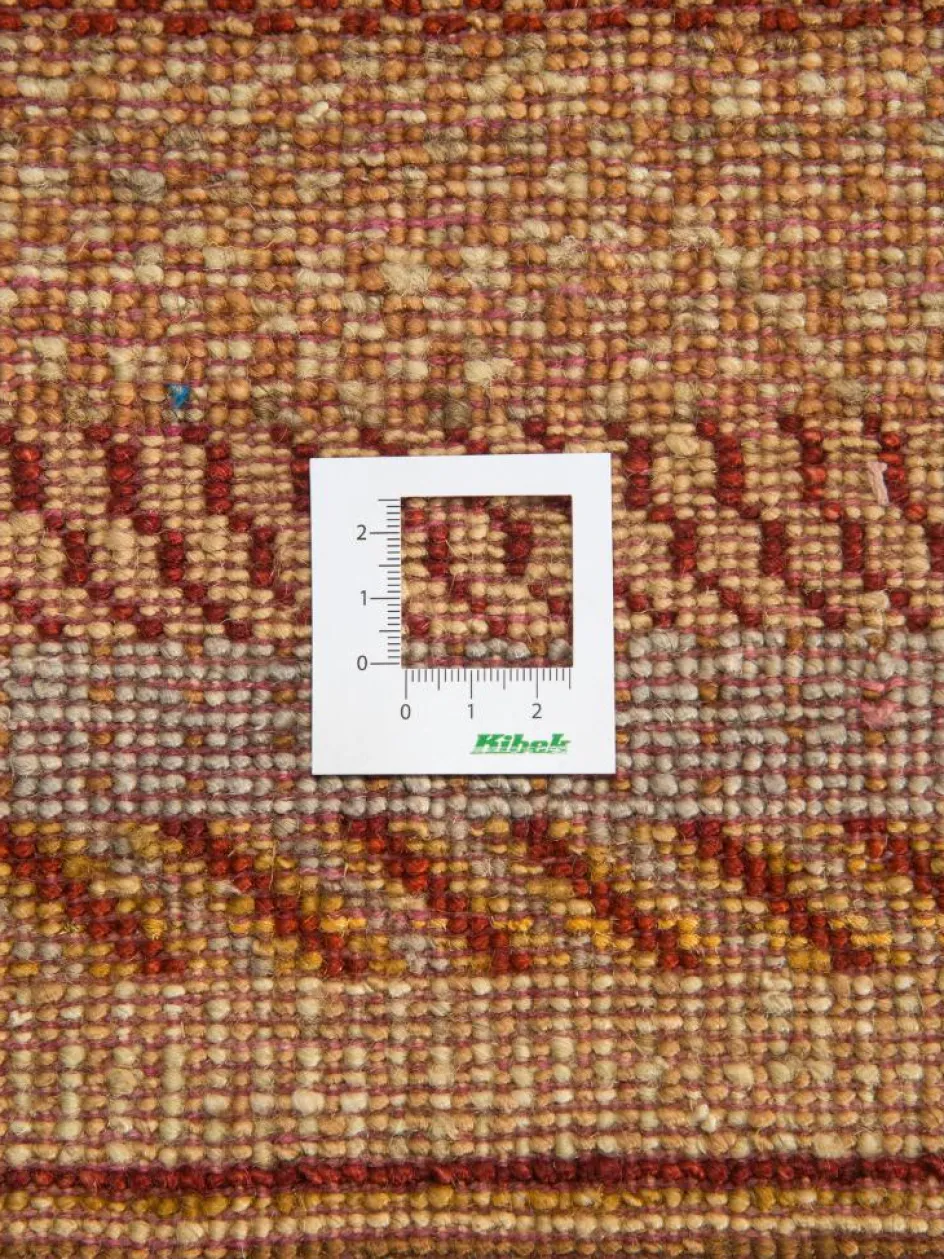 ist eine ungewöhnliche moderne Variation des traditionellen persichen Gabbehs. Er ist kürzer im Flor und feiner geknüpft. Es gibt zahllose Neukreationen in individuellen und einzigartigen Farben und Mustern.| Gesamthöhe: | ca. 6 mm |
