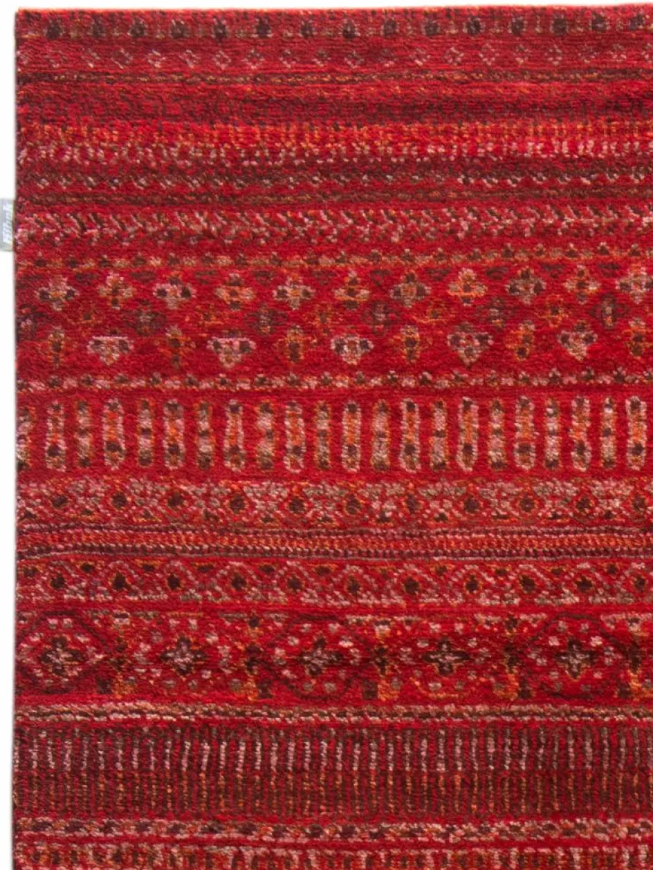 ist eine ungewöhnliche moderne Variation des traditionellen persichen Gabbehs. Er ist kürzer im Flor und feiner geknüpft. Es gibt zahllose Neukreationen in individuellen und einzigartigen Farben und Mustern.| Gesamthöhe: | ca. 10 mm |